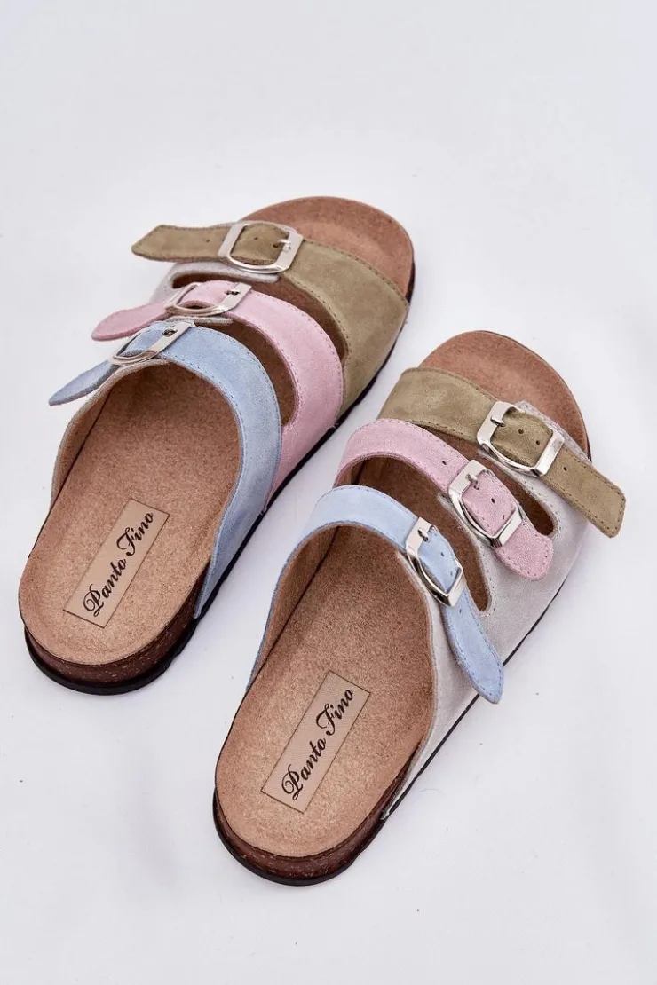 Damskie klapki wykonane z naturalnego zamszu to elegancka i modna propozycja na ciepłe dni. Osadzone na platformie, oferują komfort i stabilność przez cały dzień. Model wyróżnia się trzema regulowanymi paskami z klamrami, które pozwalają na idealne dopasowanie do stopy. Te stylowe klapki będą doskonałym uzupełnieniem letnich stylizacji, łącząc funkcjonalność z nowoczesnym wyglądem. Przy wyborze rozmiaru prosimy sugerować się tabelą rozmiarów.