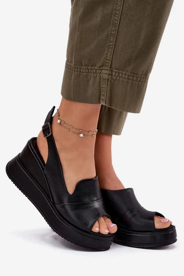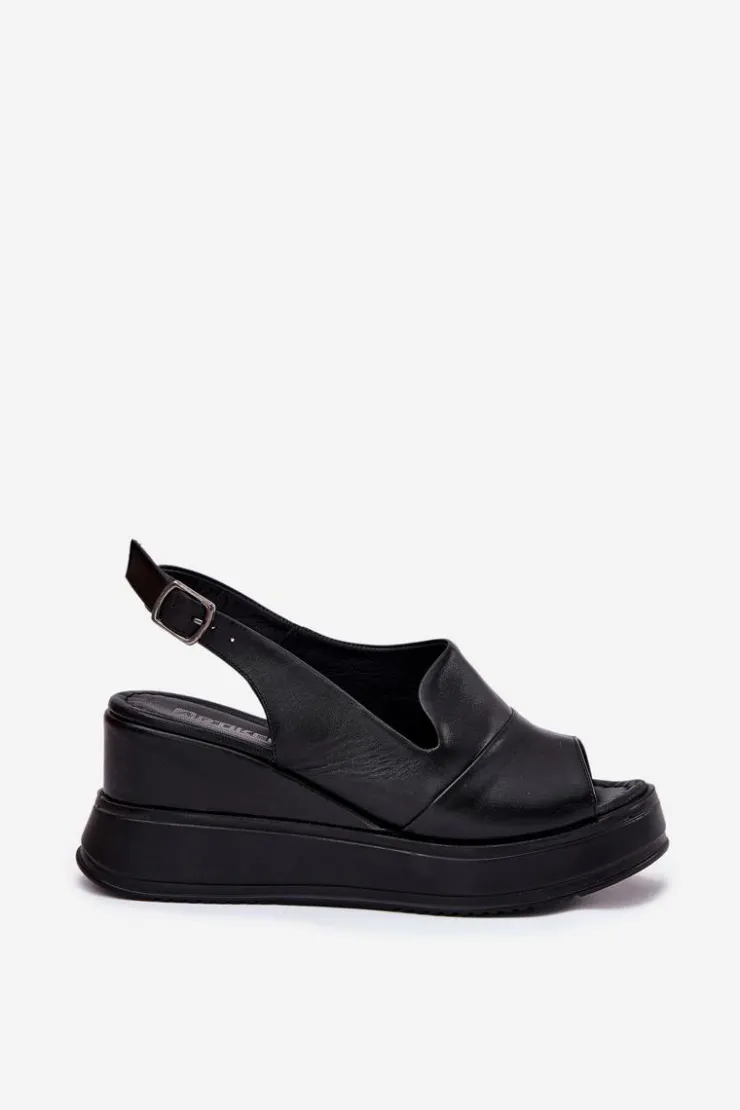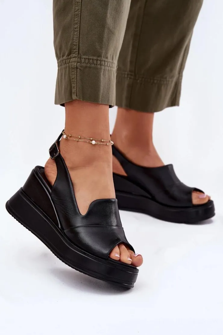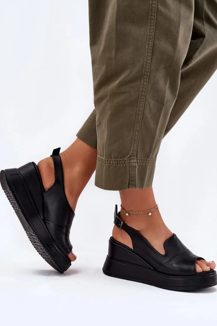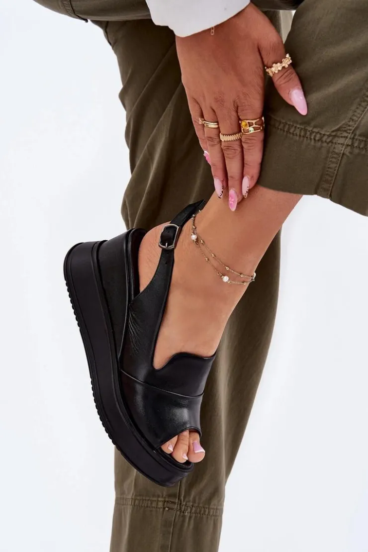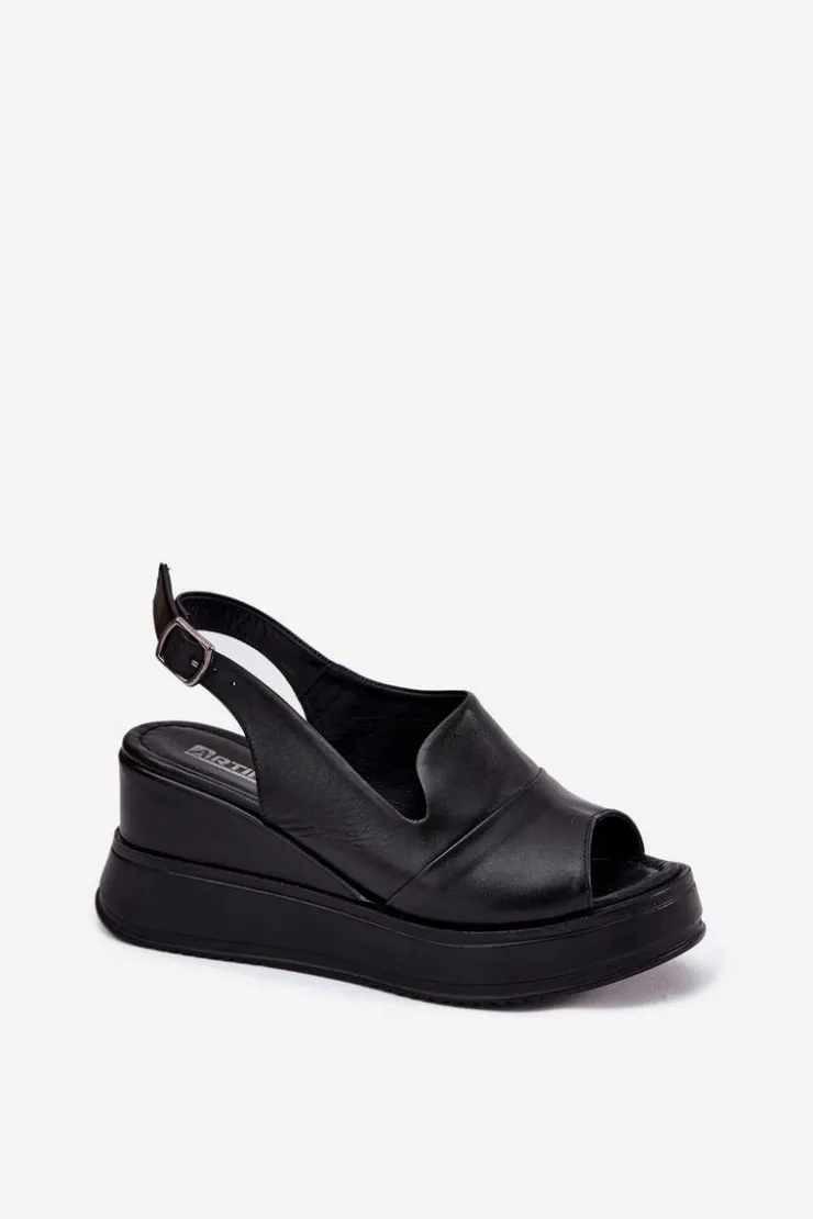 Sale Artiker Skórzane Damskie Sandały Na Koturnie 52C0484 Czarne Czarny