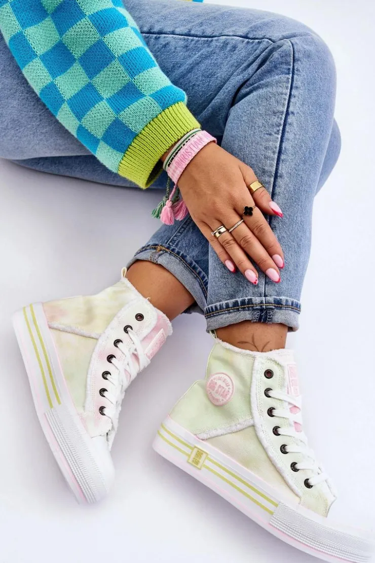 Wysokie trampki damskie zostały wykonane z materiału tekstylnego. Z boku cholewki znajduje się logo marki Big Star. Model ten jest klasycznie sznurowany. Buty zostały osadzone na masywnej, gumowej platformie z antypoślizgową podeszwą. Dodatkowo trampki posiadają usztywniany zapiętek oraz wzmocniony gumowym tworzywem nosek. Przy wyborze rozmiaru prosimy sugerować się tabelą rozmiarów.