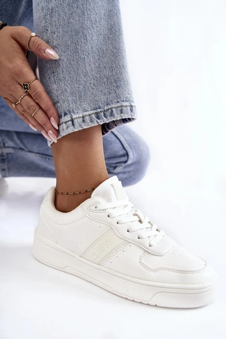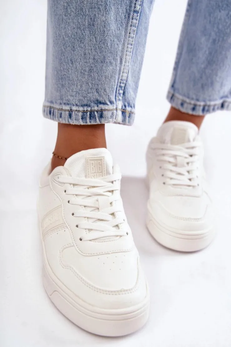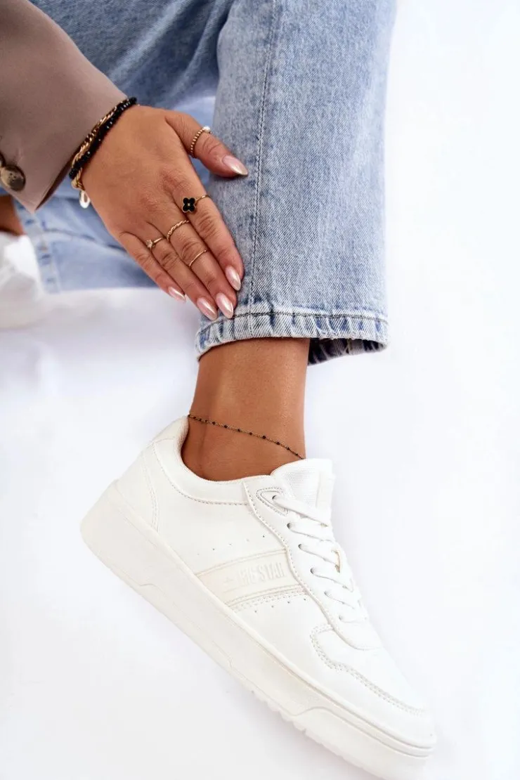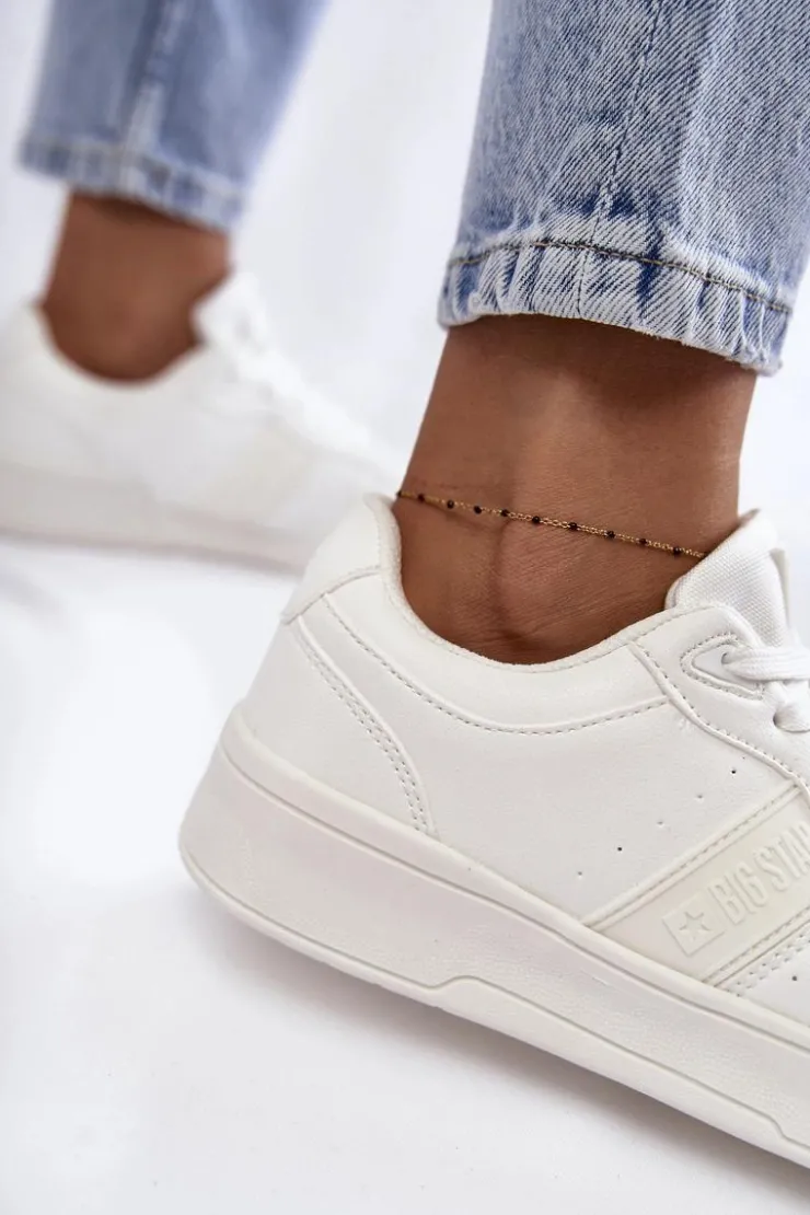 Modne buty sportowe od marki Big Star zostały wykonane z eko skóry. Model z klasycznym sznurowaniem. Wkładka Memory Foam System zapamiętuje kształt stopy, zapewnia doskonałe dopasowanie, absorbuje wstrząsy, jest odporna na odkształcenia oraz pozwala na odparowanie wilgoci i regulację temperatury. Buty zostały osadzone na masywnej, antypoślizgowej platformie. Posiadają usztywniany zapiętek. Przy wyborze rozmiaru prosimy sugerować się tabelą rozmiarów.