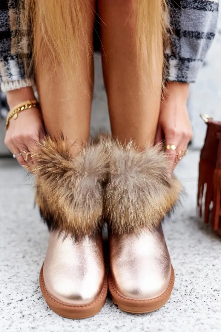 Śniegowce to idealny wybór na chłodne dni. Buty wykonane są z naturalnej skóry zamszowej. Futerko wokół kostki jest naturalne natomiast wnętrze zostało ocieplone grubym eko futerkiem. Koniecznie sprawdź całą naszą kolekcję śniegowców! Przy wyborze rozmiaru prosimy kierować tabelą rozmiarów.