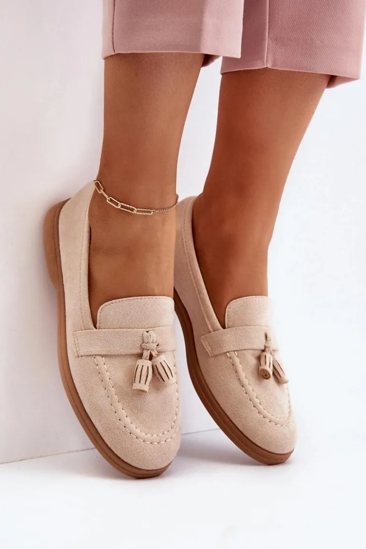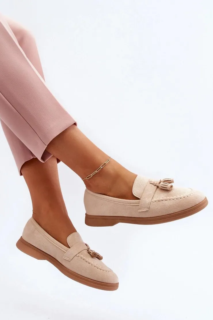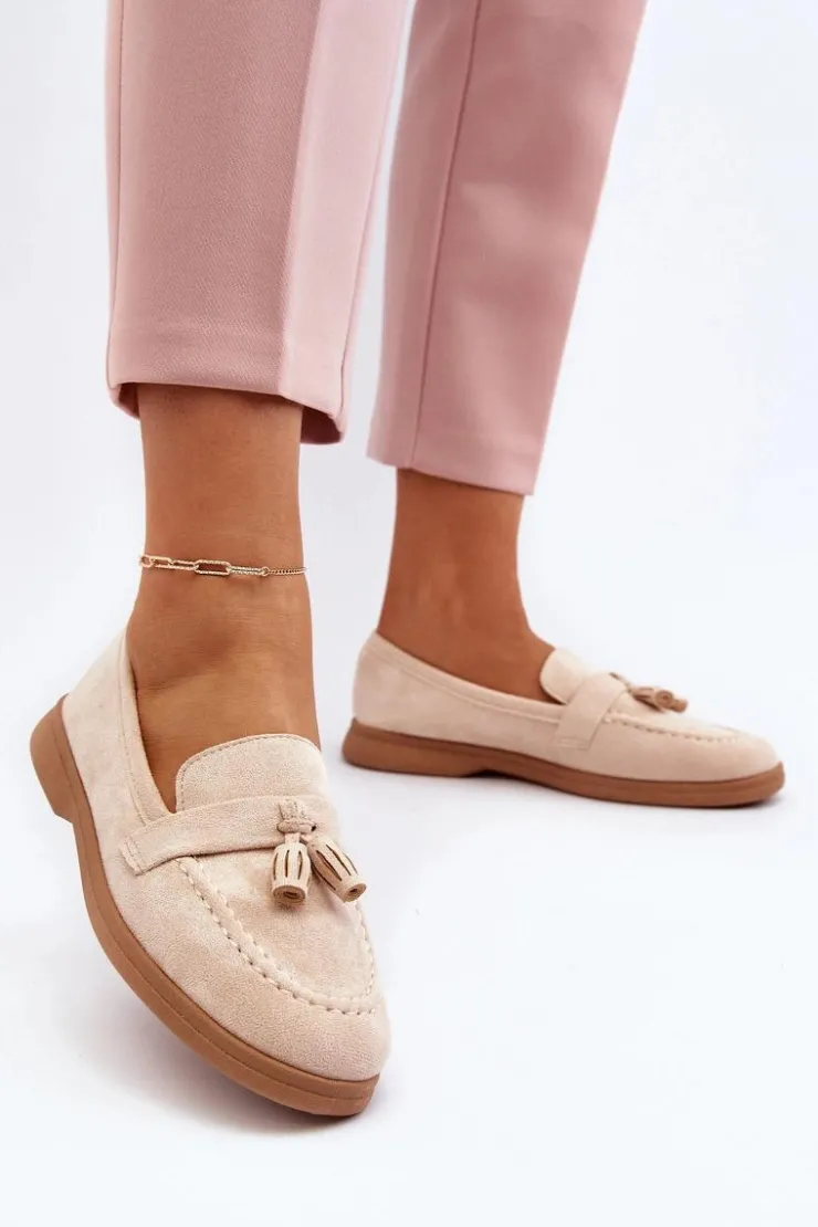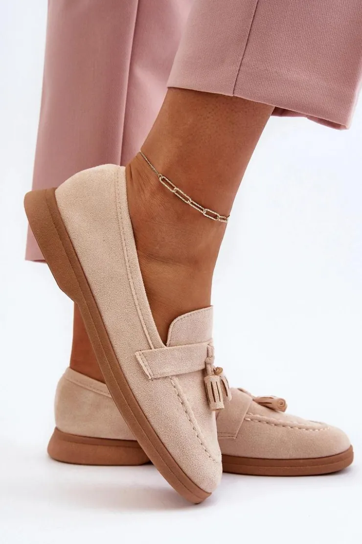 Mokasyny to absolutny hit tego sezonu! Wykonane z eko zamszu, prezentują się nie tylko stylowo, ale także są przyjemne w noszeniu. Zaokrąglony nosek dodaje im uroku, a miękka wkładka z eko skóry zapewnia niezrównany komfort, nawet podczas długiego noszenia. Osadzone na płaskim obcasie, będą doskonałym uzupełnieniem wielu różnorodnych stylizacji! Przy wyborze rozmiaru prosimy sugerować się tabelą rozmiarów.