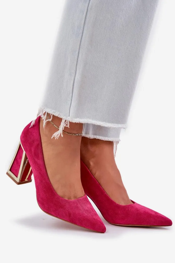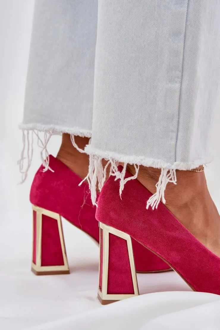 Eleganckie czółenka damskie z eko zamszu to idealna propozycja na specjalne okazje. Szpiczaste noski nadają im wyrafinowanego charakteru, a wysoki obcas słupek z lustrzanym elementem dodaje nowoczesnego blasku. Miękka wkładka ze skóry naturalnej zapewnia komfort przez cały dzień. Te czółenka łączą elegancję z wygodą, stanowiąc doskonałe uzupełnienie wieczorowych stylizacji i eleganckich outfitów. Przy wyborze rozmiaru prosimy kierować się tabelą rozmiarów