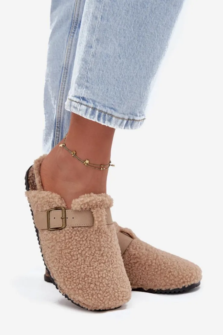 Damskie klapki z futerkiem typu baranek to idealne połączenie wygody i stylu. Zakryte, zaokrąglone noski zapewniają komfort noszenia, a regulowany pasek z klamrą pozwala dopasować obuwie do stopy. Miękka wyściółka sprawia, że klapki są wyjątkowo przyjemne w użytkowaniu – świetnie sprawdzą się zarówno w domu, jak i w casualowych, codziennych stylizacjach. Przy wyborze rozmiaru prosimy sugerować się tabelą rozmiarów.