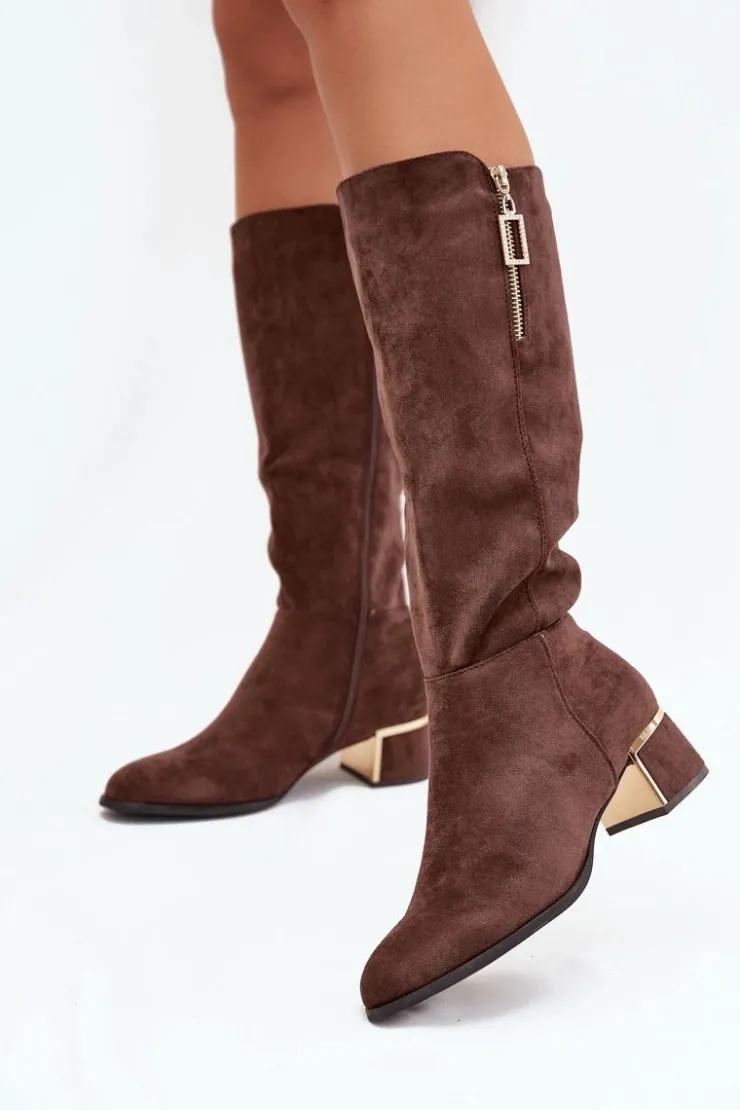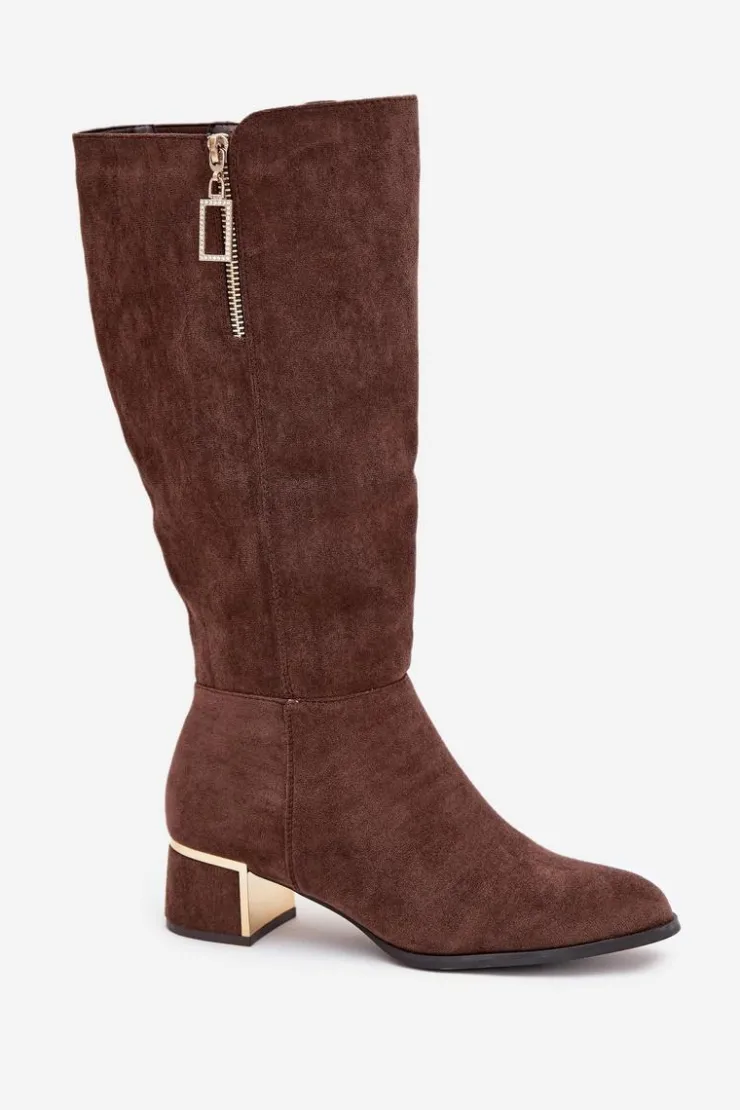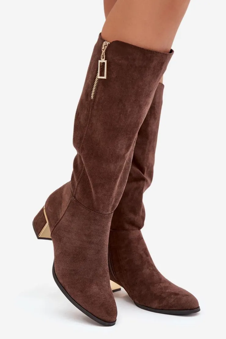 Kozaki damskie wykonane z eko zamszu to doskonała propozycja na chłodniejsze dni. Osadzone na niskim obcasie gwarantują wygodę podczas noszenia, a praktyczny zamek ułatwia zakładanie. Uwagę przyciągają stylowe detale – ozdobny suwak umieszczony na górze cholewki, obcas z lustrzanym elementem oraz przeszycia. To model, który świetnie sprawdzi się zarówno w codziennych, jak i bardziej eleganckich stylizacjach.
