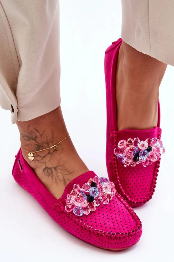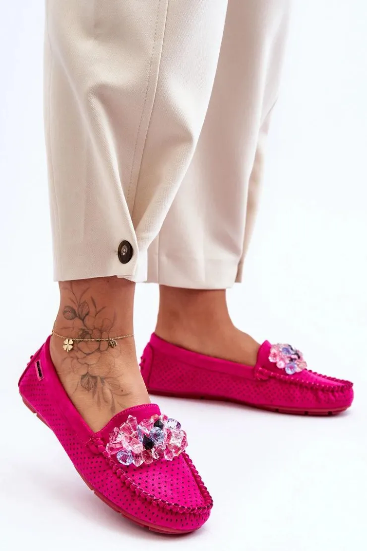 Sale Boto Modne Zamszowe Mokasyny Z Ozdobami Fuksja Delima