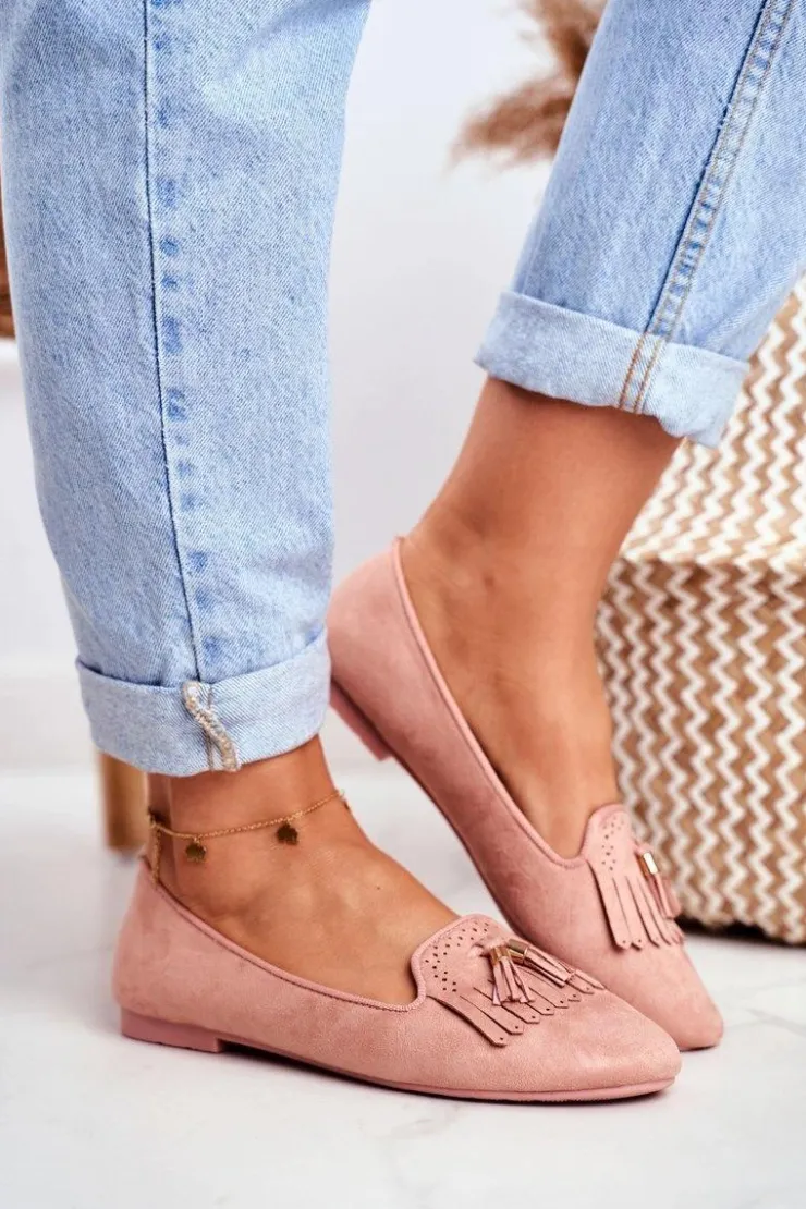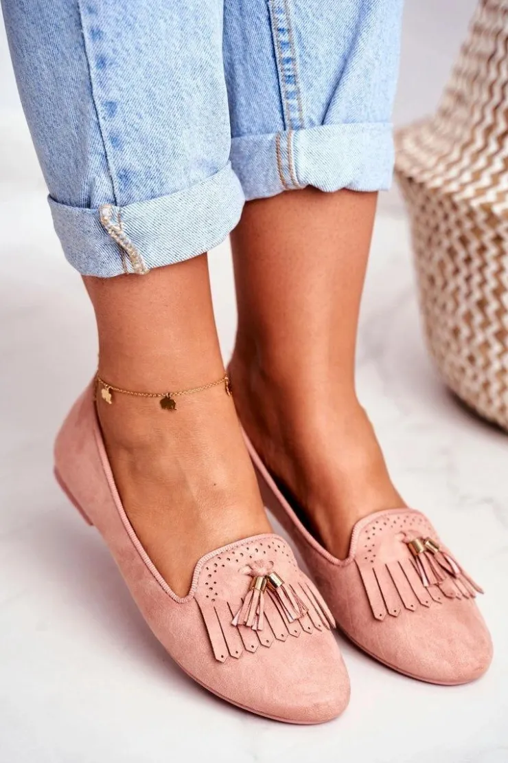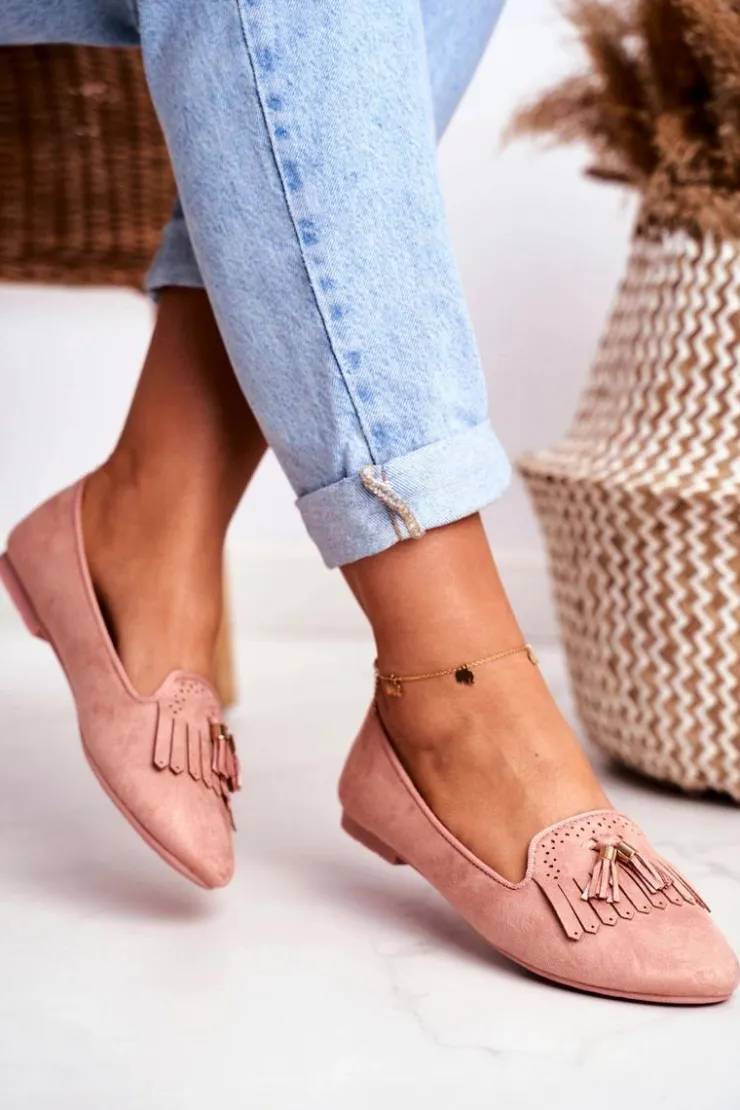 Sale Boto Mokasyny Damskie Różowe Lordsy Frędzle Therese