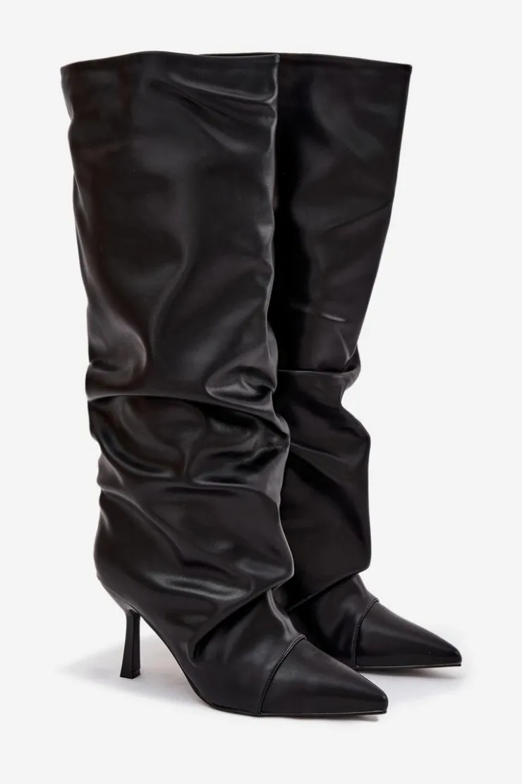 Kozaki damskie wykonane z wysokiej jakości eko skóry to model stworzony dla kobiet ceniących elegancję i modny wygląd. Osadzone na smukłej szpilce pięknie wysmuklają sylwetkę i dodają stylizacji kobiecego charakteru. Ich wsuwany fason uzupełniony marszczeniem na cholewce nadaje całości efektownego, nowoczesnego wyglądu i sprawia, że buty stają się wyrazistym akcentem outfitu. Wnętrze ocieplane kocem obuwniczym gwarantuje komfort i przyjemne ciepło podczas chłodniejszych dni. To kozaki, które świetnie sprawdzą się zarówno w eleganckich zestawach z sukienką czy spódnicą, jak i w bardziej codziennych stylizacjach, dodając im nuty szyku i klasy. Idealny wybór na jesień i zimę. Przy wyborze rozmiaru prosimy kierować tabelą rozmiarów.