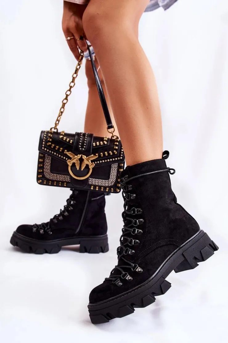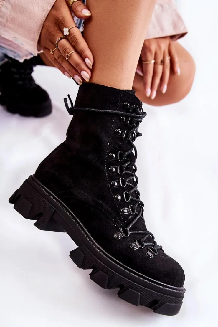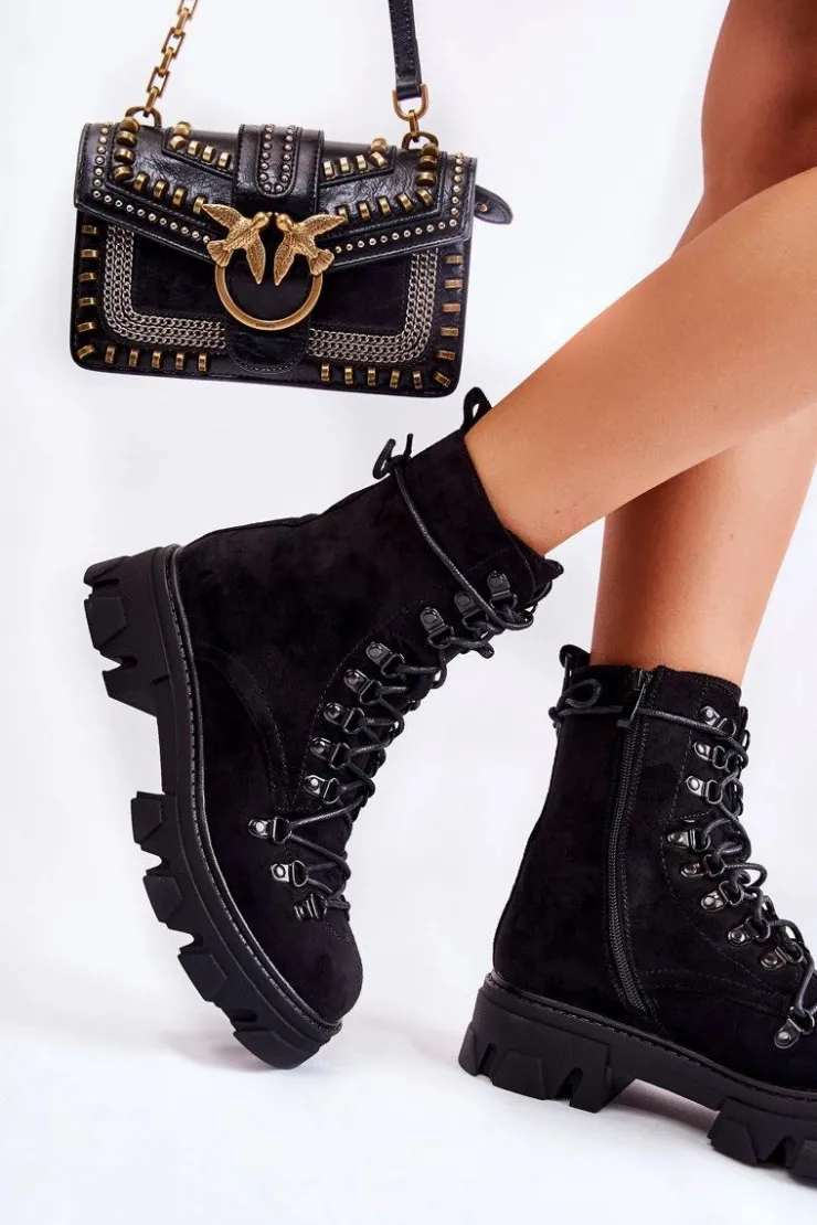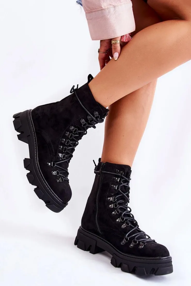 Świetne botki na chłodniejsze dni! Wykonane z przyjemnego w dotyku eko zamszu. Wnętrze ocieplone miłym w dotyku futerkiem. Posiadają suwak ułatwiający zakładanie obuwia oraz wiązanie. Botki z usztywnianym zapiętkiem. Masywna platforma z płaskim obcasem gwarantuje stabilność. Koniecznie musisz je mieć, nie zwlekaj z zakupem! Przy wyborze rozmiaru prosimy sugerować się tabelą rozmiarów.