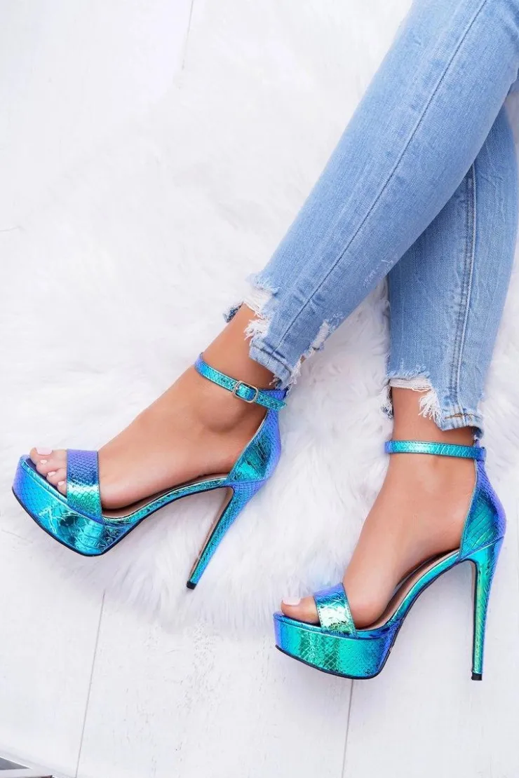 Sale Boto Sandały Damskie Na Szpilce Platformie Benzynowe Błękitne ShakeIt