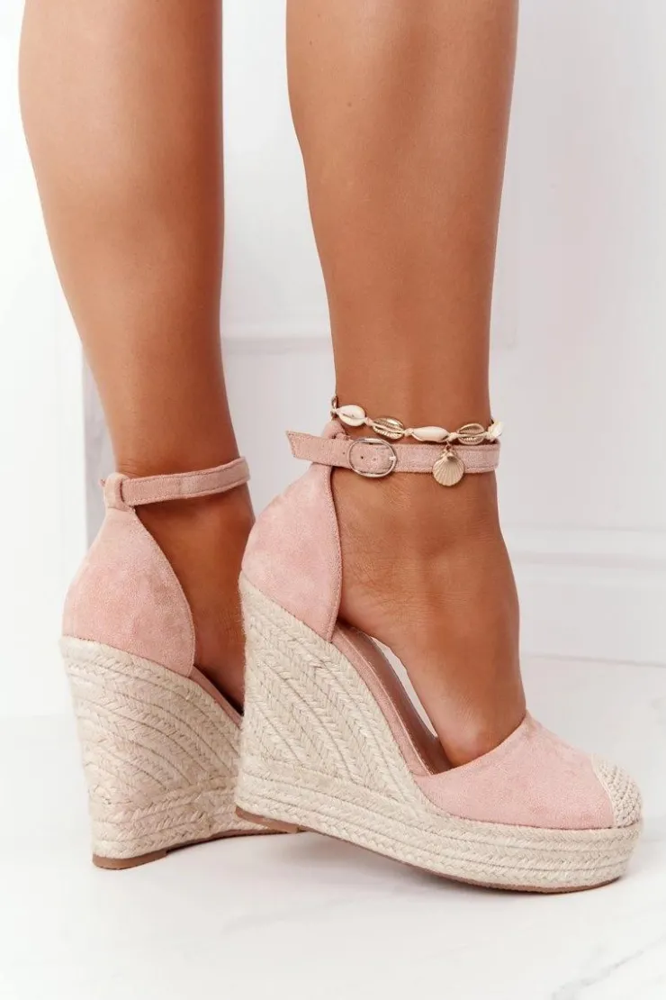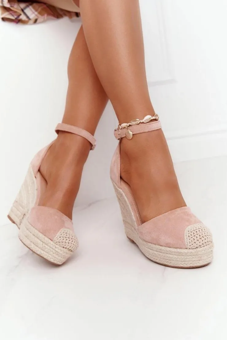 Sale Boto Sandały Na Koturnie Z Plecionką Jasnoróżowe Avocado