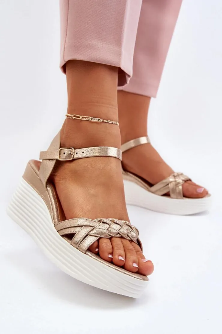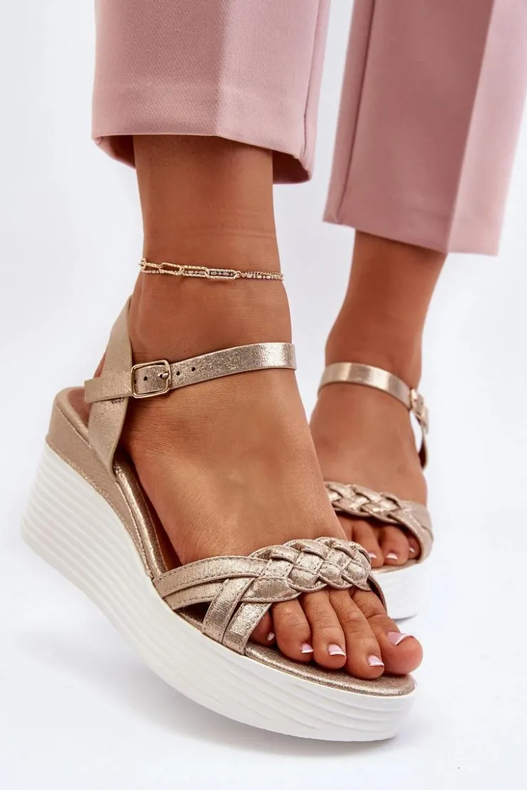 Sandały damskie to idealny wybór do letnich stylizacji. Model ten posiada zapinanie na regulowany pasek ze sprzączką, który zapewni odpowiednie dopasowanie. Obcas obcas w formie koturnu i platforma będą gwarantować stabilność i wygodę. Dodatkowo eko skórzana wkładka zapewni komfort nawet podczas długiego noszenia. Przy wyborze rozmiaru prosimy sugerować się tabelą rozmiarów.
