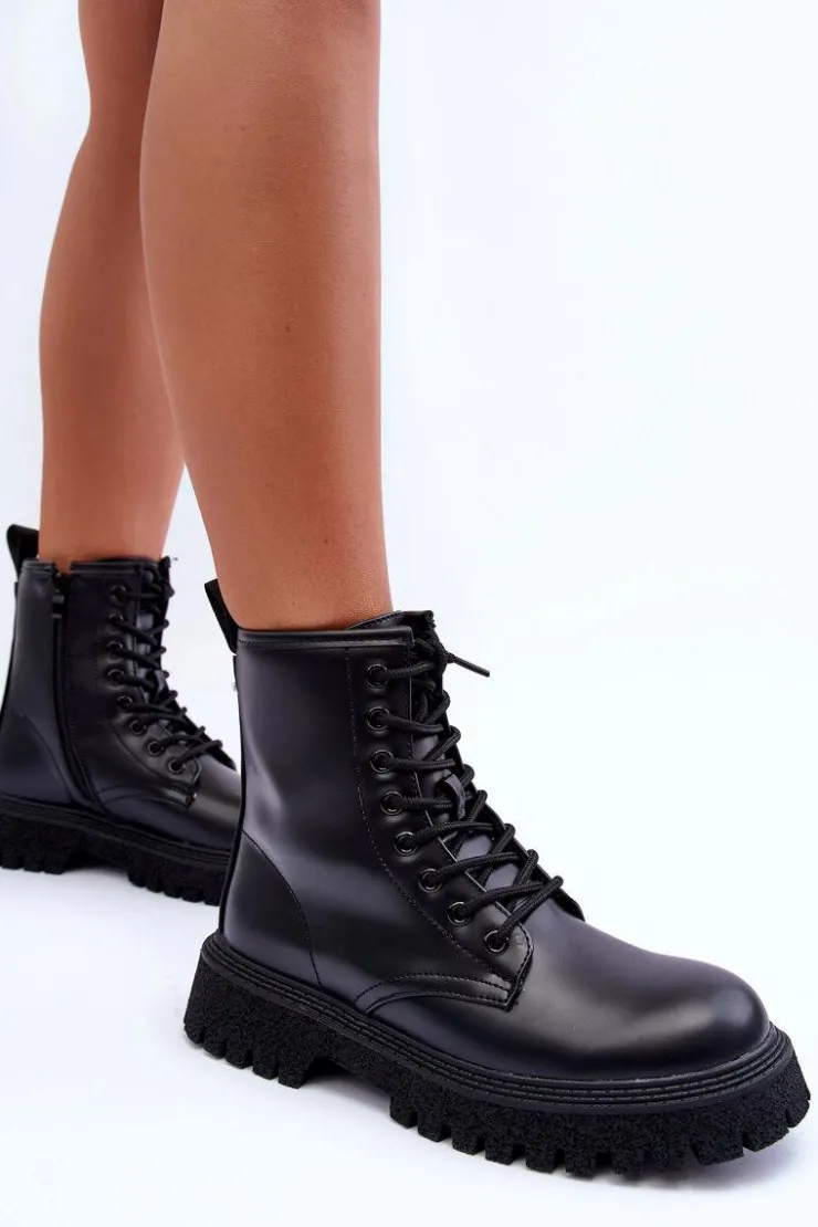 Wygodne botki damskie zostały wykonane eko skóry. Osadzone na masywnej platformie i płaskim obcasie. Posiadają zapinanie z boku na suwak oraz dodatkowe sznurowanie Zapiętek w tym obuwiu jest usztywniany. Model ten jest idealny na jesienne dni! Koniecznie powinnaś je mieć w swojej szafie! Przy wyborze rozmiaru prosimy sugerować się tabelą rozmiarów.