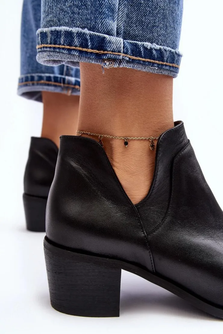 Damskie, wsuwane botki zostały wykonane z wysokiej jakości naturalnych skór. Model z modnymi wycięciami po bokach cholewki. Miękka wkładka zapewni komfort podczas użytkowania. Dodatkowo zapiętek jest usztywniany. Osadzone na niskim obcasie w postaci klocka. Te botki świetnie sprawdzą się w wielu stylizacjach! Powinnaś mieć je w swojej szafie! Przy wyborze rozmiaru prosimy sugerować się tabelą rozmiarów.