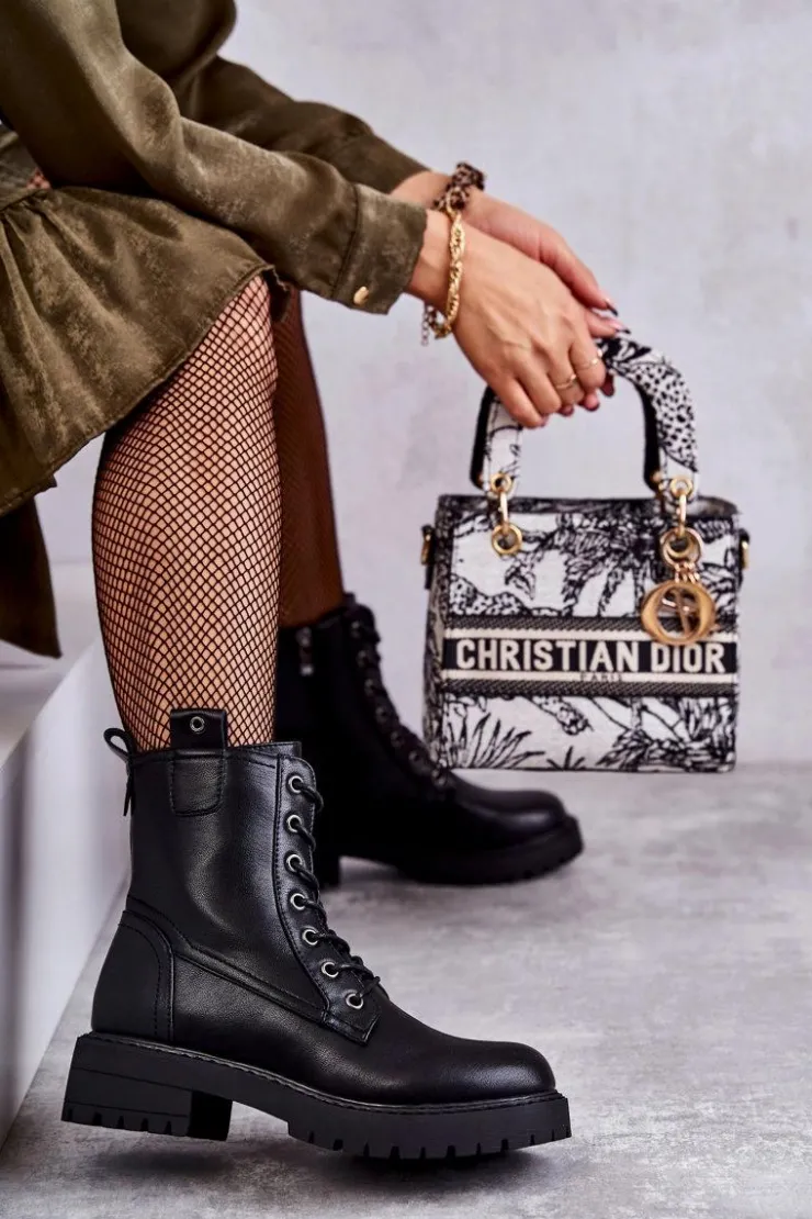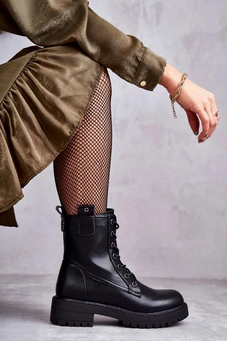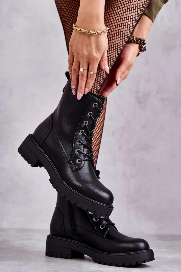 Botki damskie o klasycznym fasonie świetnie sprawdzą się na jesienne, chłodne dni. Posiadają wewnątrz ocieplenie w postaci koca obuwniczego. Osadzone na płaskim, stabilnym obcasie ze żłobieniami. Dodatkowo posiadają usztywniany zapiętek. Model z suwakiem na boku cholewki oraz sznurowaniem. Idealny model do pracy czy szkoły. Przy wyborze rozmiaru prosimy sugerować się tabelą rozmiarów.