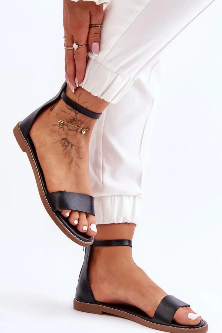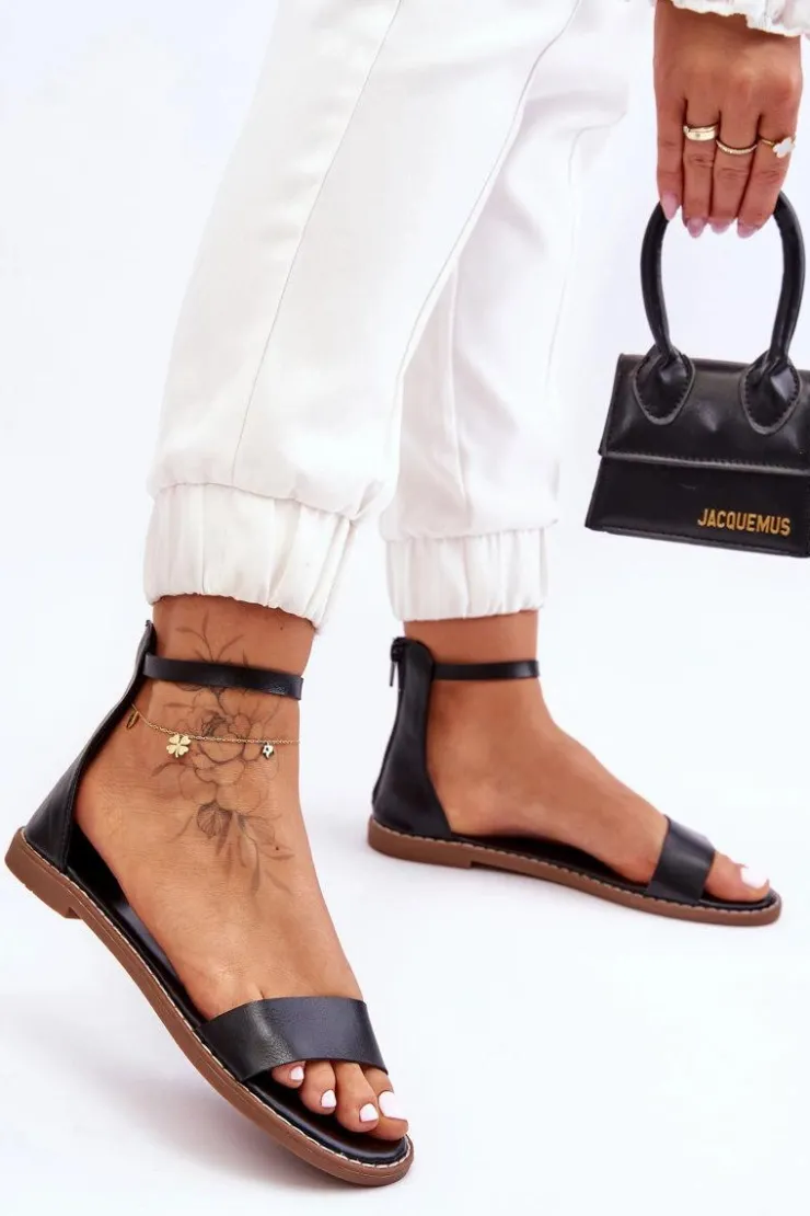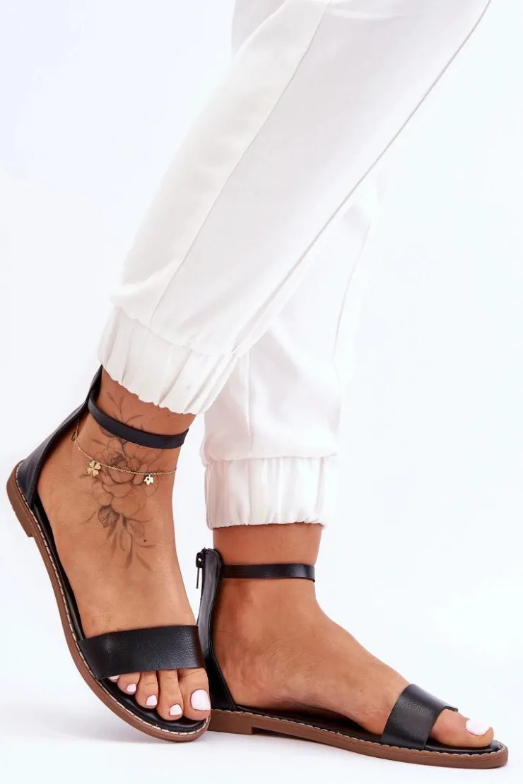 Damskie sandały zostały wykonane z eko skóry. Osadzone na płaskim obcasie i antypoślizgowej podeszwie. Sandałki posiadają z przodu paseczek. Miękka wkładka także została wykonana z eko skóry. Buty te posiadają zapinanie na zamek z tyłu cholewki. Nosek jest odkryty, zaokrąglony. Wokół podeszwy znajduje się przeszycie. Przy wyborze rozmiaru prosimy kierować się tabelą rozmiarów.