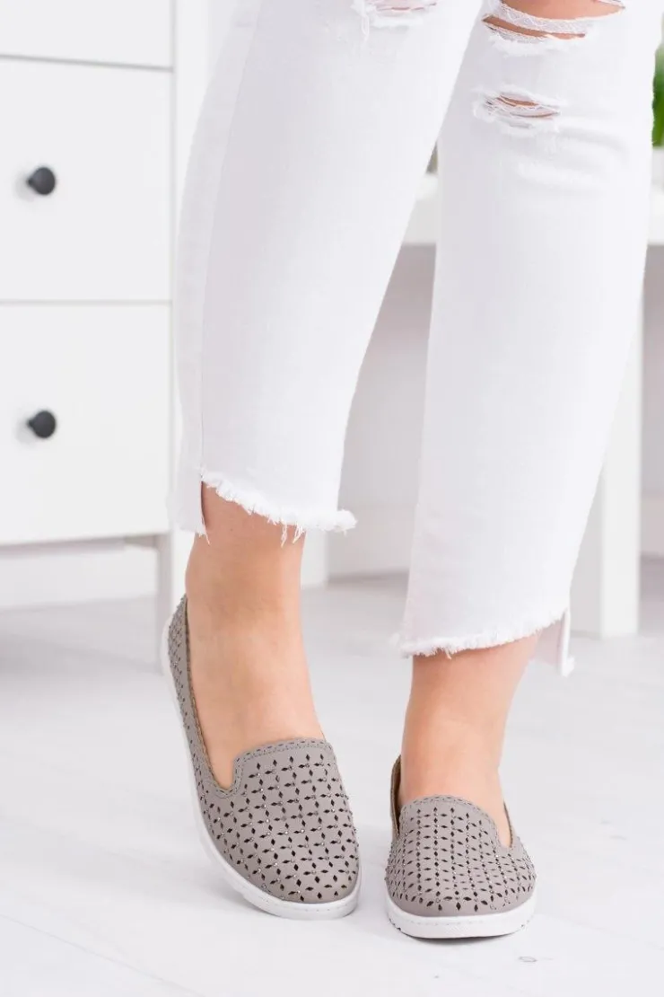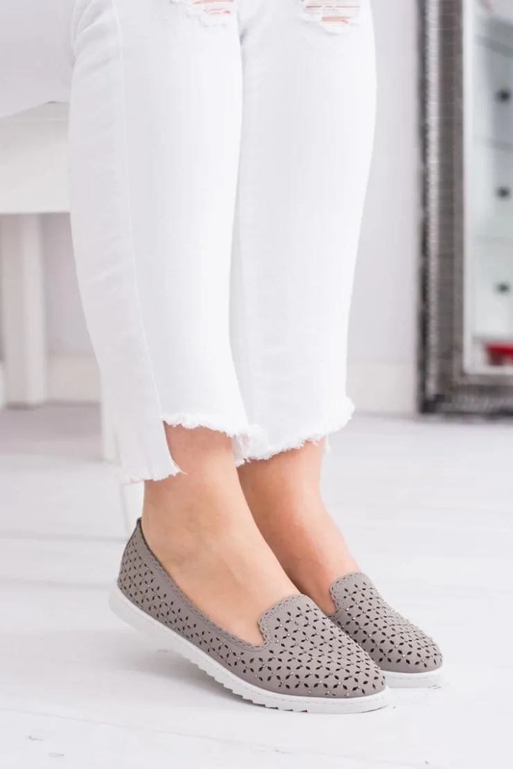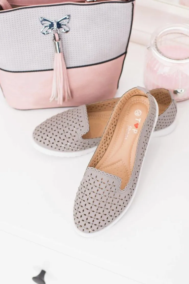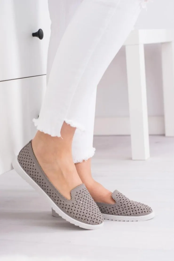 Sale Boto Szare Damskie Baleriny Lordsy z Cyrkoniami Hortense