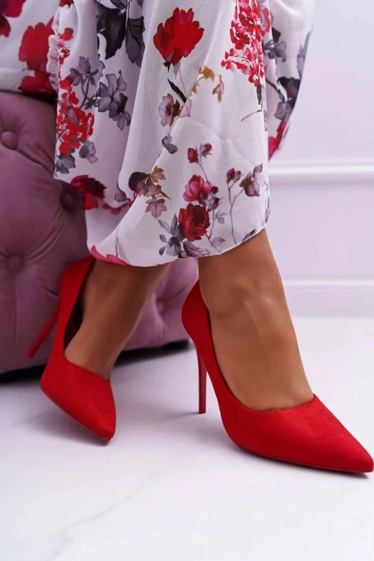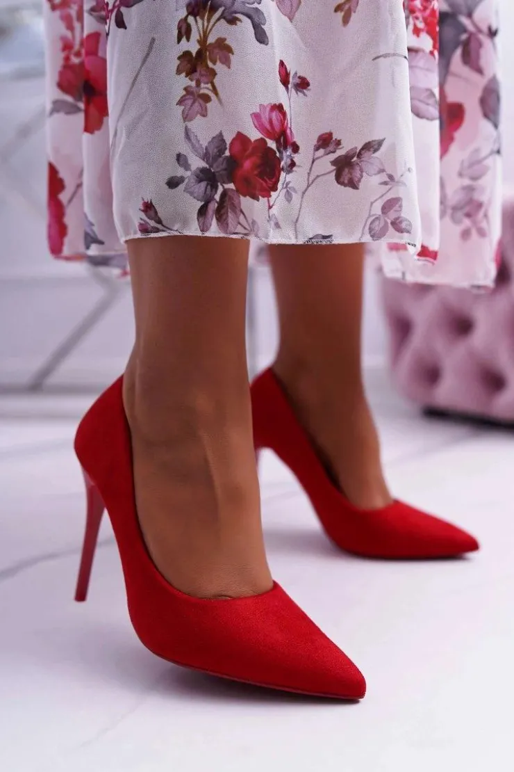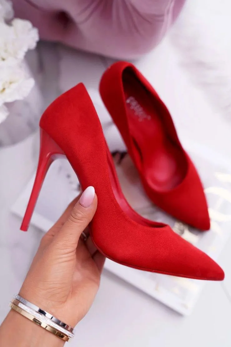 Sale Boto Szpilki Damskie Zamszowe Czerwone Yanna