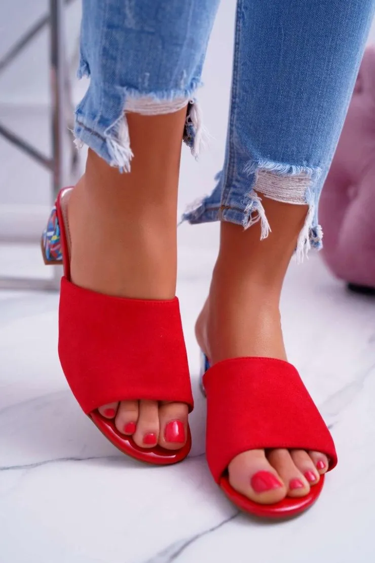 Sale Buty Sergio Leone Klapki Damskie Eleganckie Na Klocku Zamszowe Czerwone Valencia
