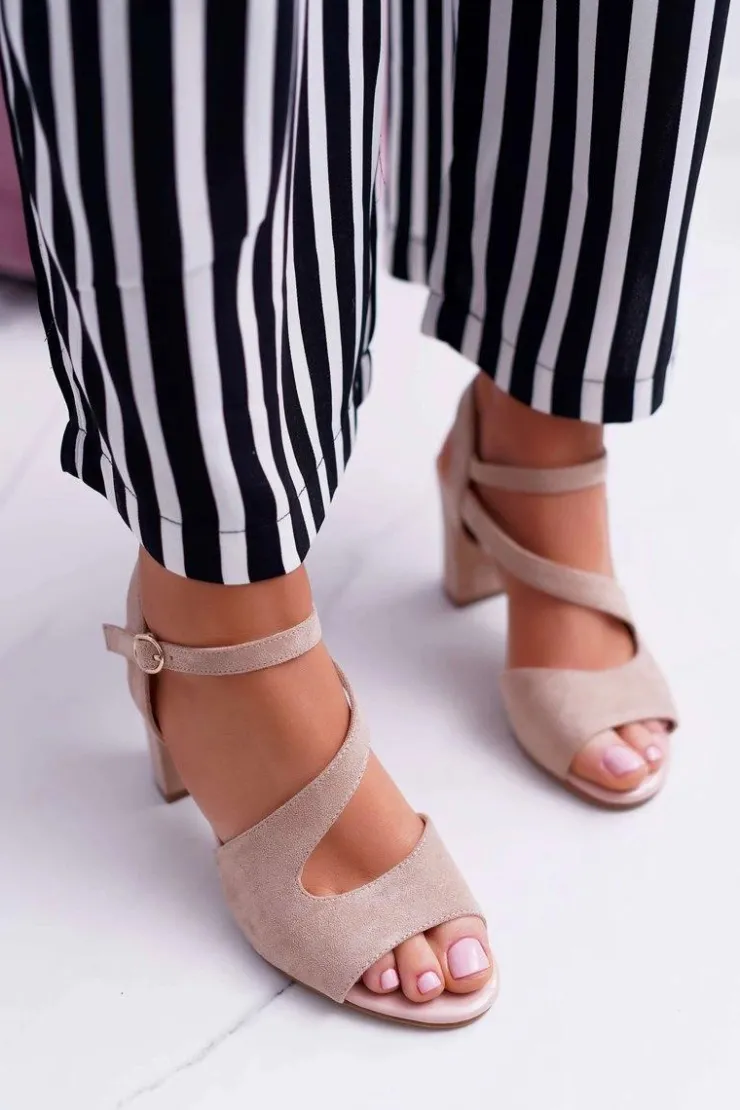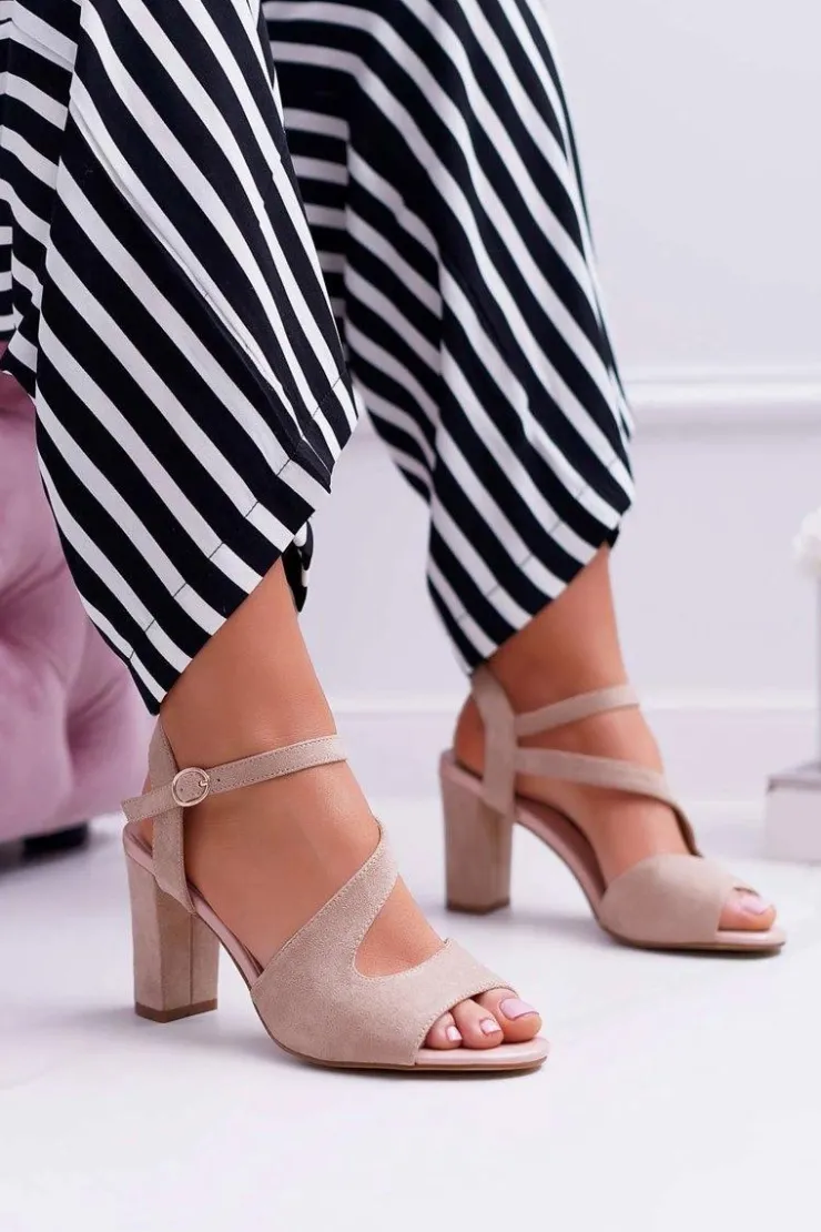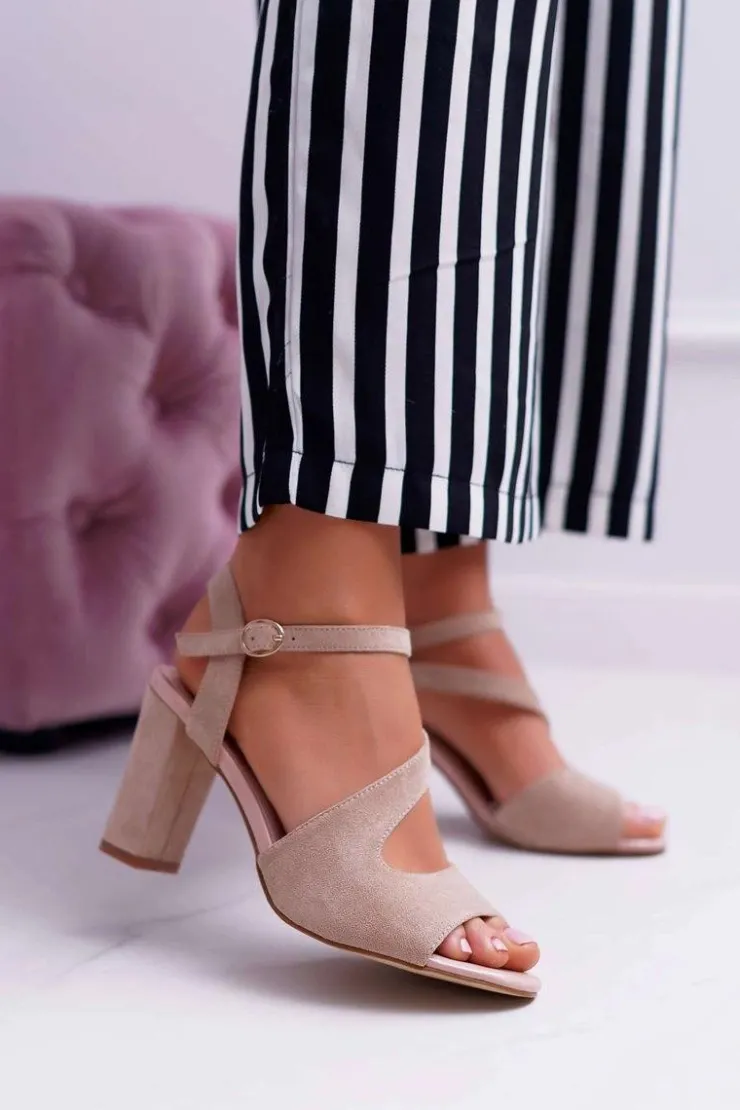 Sale Buty Sergio Leone Sandały Damskie Na Słupku Sergio Leone SK868 Zamszowe Beżowe Mersi