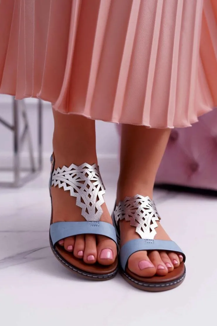 Sale Buty Sergio Leone Sandały Damskie Płaskie Sergio Leone SK011 Niebieskie Lirielle