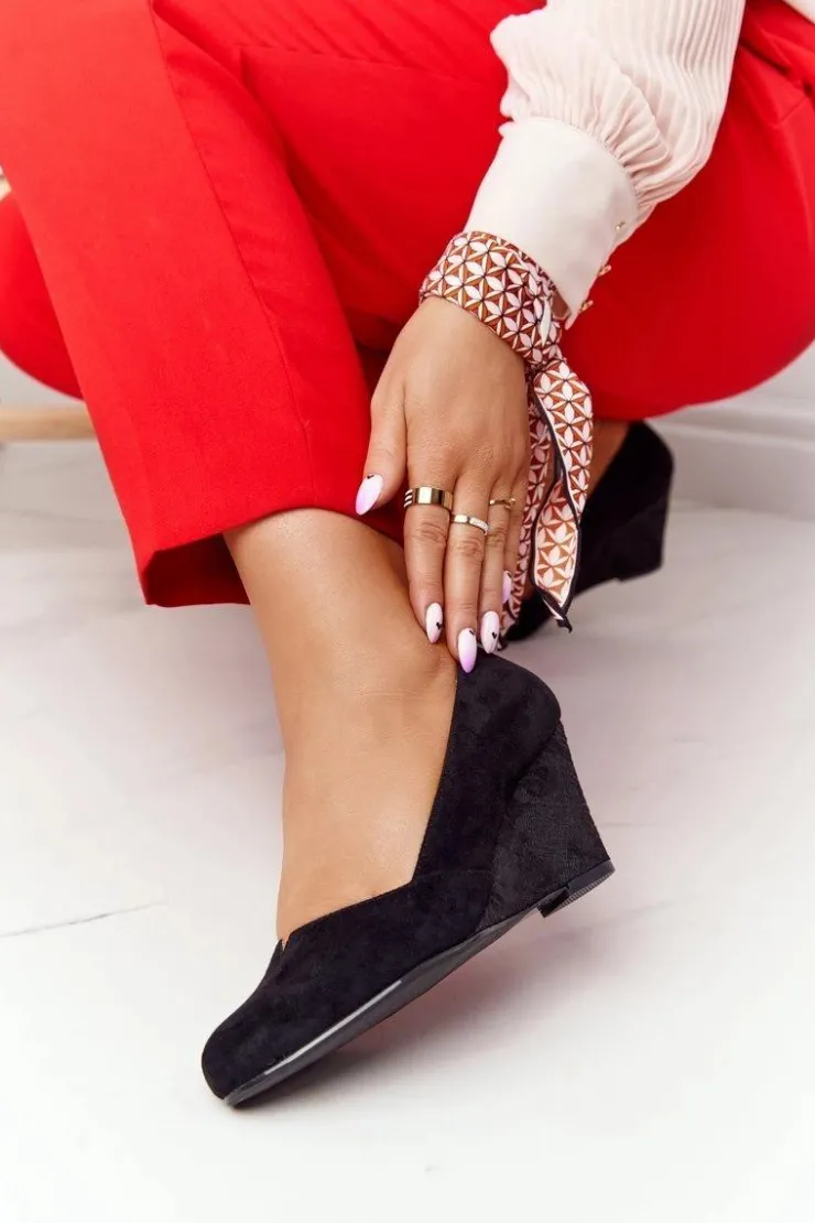 Eleganckie czółenka na koturnie marki Sergio Leone. Buty wykonane są z najwyższą starannością z eko zamszu. Czółenka posiadają miękką wkładkę ze skóry naturalnej, która zapewni Ci komfort. Koniecznie sprawdź całą naszą kolekcję butów marki Sergio Leone! Przy wyborze rozmiaru prosimy sugerować się tabelą rozmiarów.