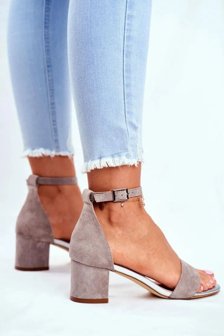 Sale Buty Sergio Leone Zamszowe Sandały Na Słupku Sergio Leone SK839 Szaro-Srebrne