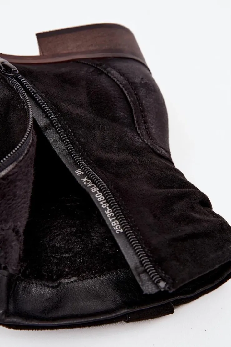 Botki damskie wykonane z miękkiego eko zamszu. Model osadzony na niskim obcasie zapewnia komfort noszenia, a ocieplane wnętrze doskonale sprawdza się w chłodniejsze dni. Zamek ułatwia zakładanie i zdejmowanie butów, natomiast zaokrąglone noski nadają im klasycznego charakteru. Uroku dodaje marszczona cholewka, która podkreśla stylowy, kobiecy wygląd. To uniwersalne botki idealne do codziennych stylizacji – świetnie pasują zarówno do spodni, jak i sukienek.Przy wyborze rozmiaru prosimy sugerować się tabelą rozmiarów.