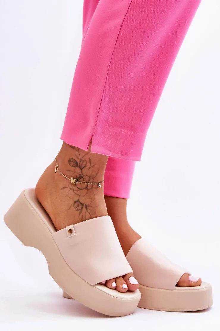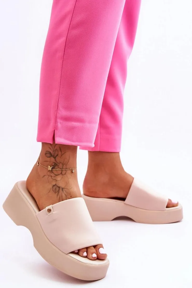 Klasyczne klapki osadzone na masywnej platformie i płaskim obcasie. Wykonane z wierzchu z materiału tekstylnego. Posiadają delikatne zdobienie. Miękka wkładka zapewni wygodne użytkowanie obuwia nawet przez cały dzień. Klasyczny fason z odkrytym, kwadratowym noskiem. Świetnie sprawdzą się do wielu stylizacji! Przy wyborze rozmiaru prosimy kierować się tabelą rozmiarów.