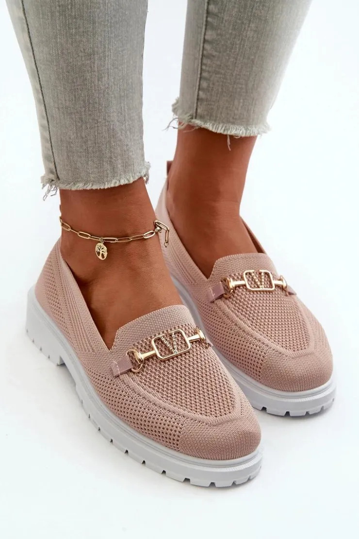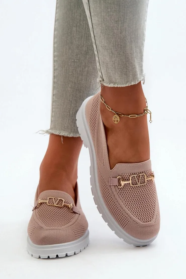 Damskie mokasyny wykonane z przewiewnej tkaniny. Osadzone na płaskim obcasie, co zapewnia komfort noszenia przez cały dzień. Zaokrąglone noski nadają im klasyczny wygląd. Ozdobione złotym detalem. Miękka wkładka z pianki, dodatkowo pokryta materiałem, gwarantuje wygodę. Przy wyborze rozmiaru prosimy sugerować się tabelą rozmiarów.