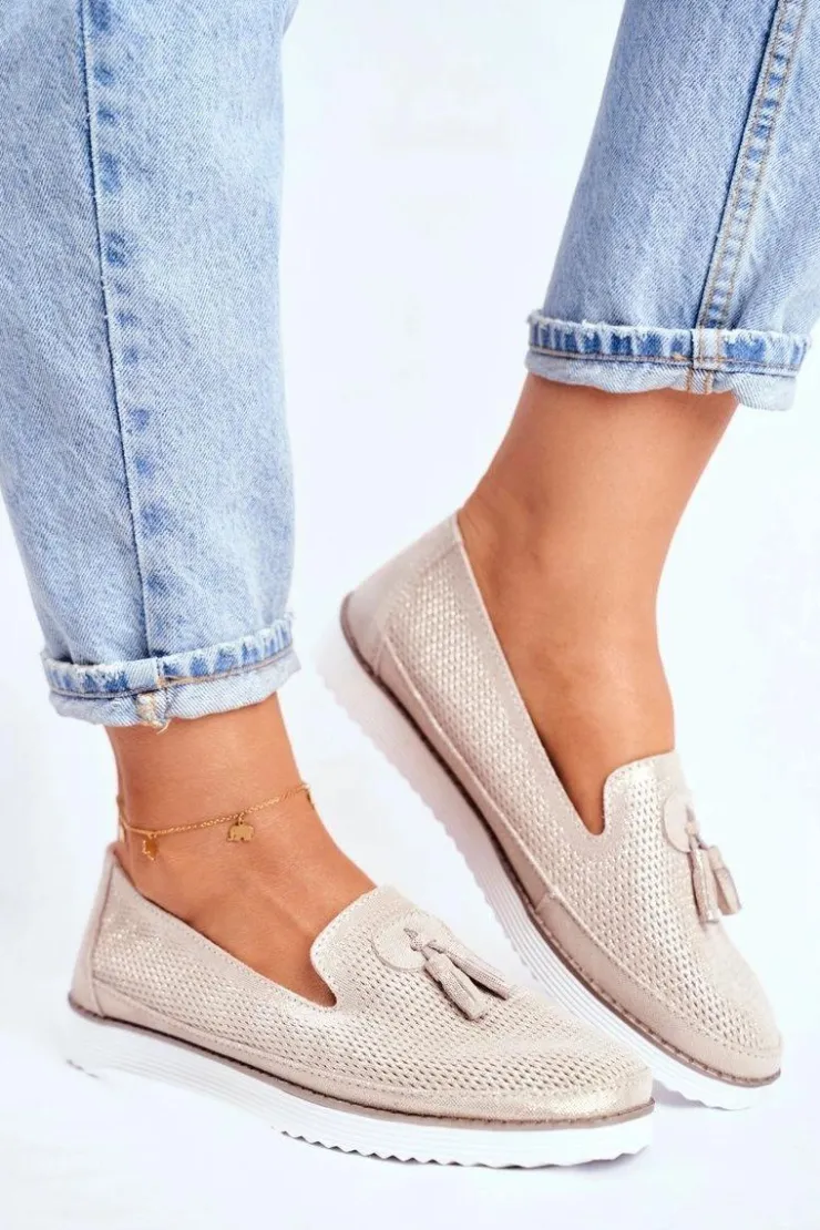 Sale Evento Mokasyny Damskie Skórzane Złote Amore Mio