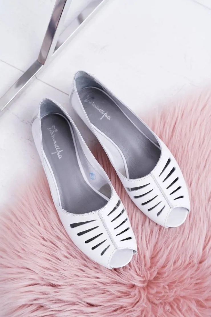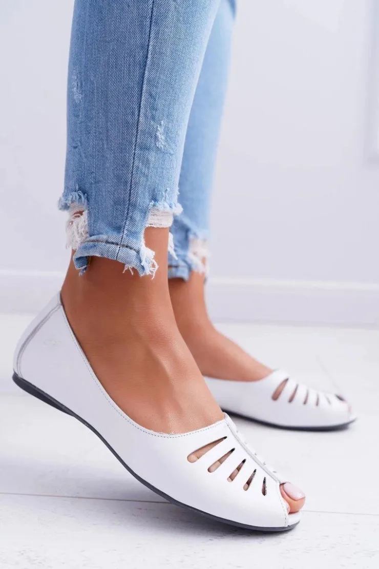 Sale Maciejka Baleriny Damskie Skórzane Odkryte Palce 03497-59