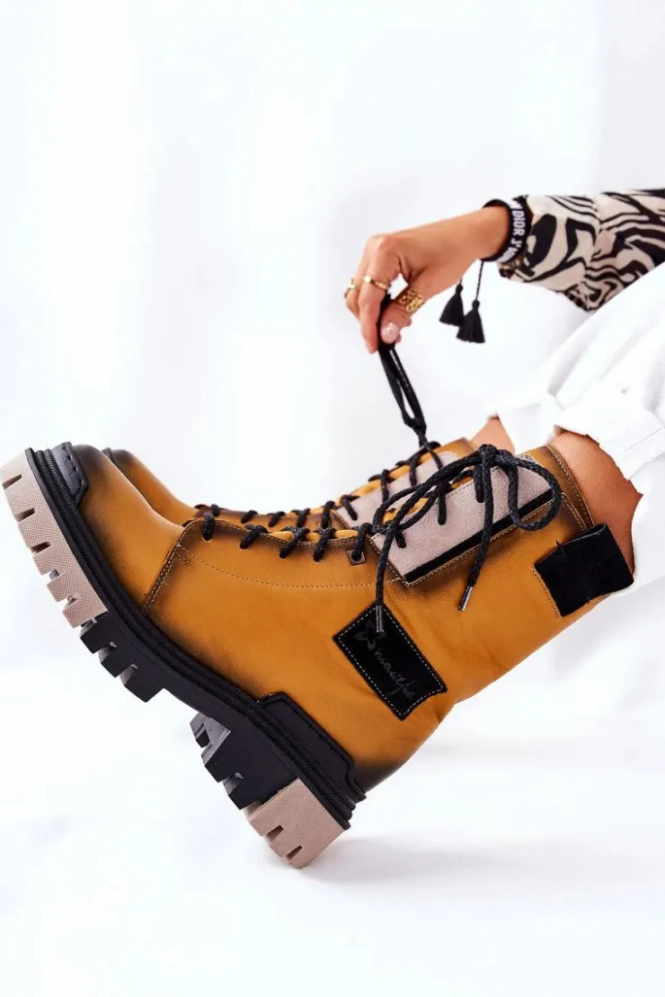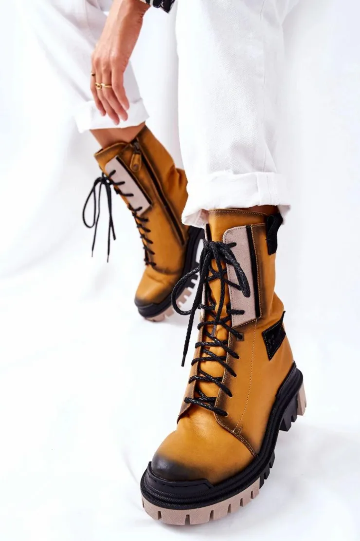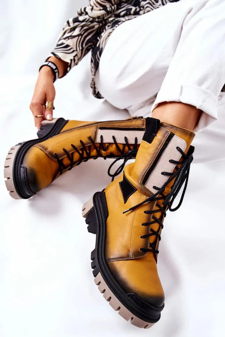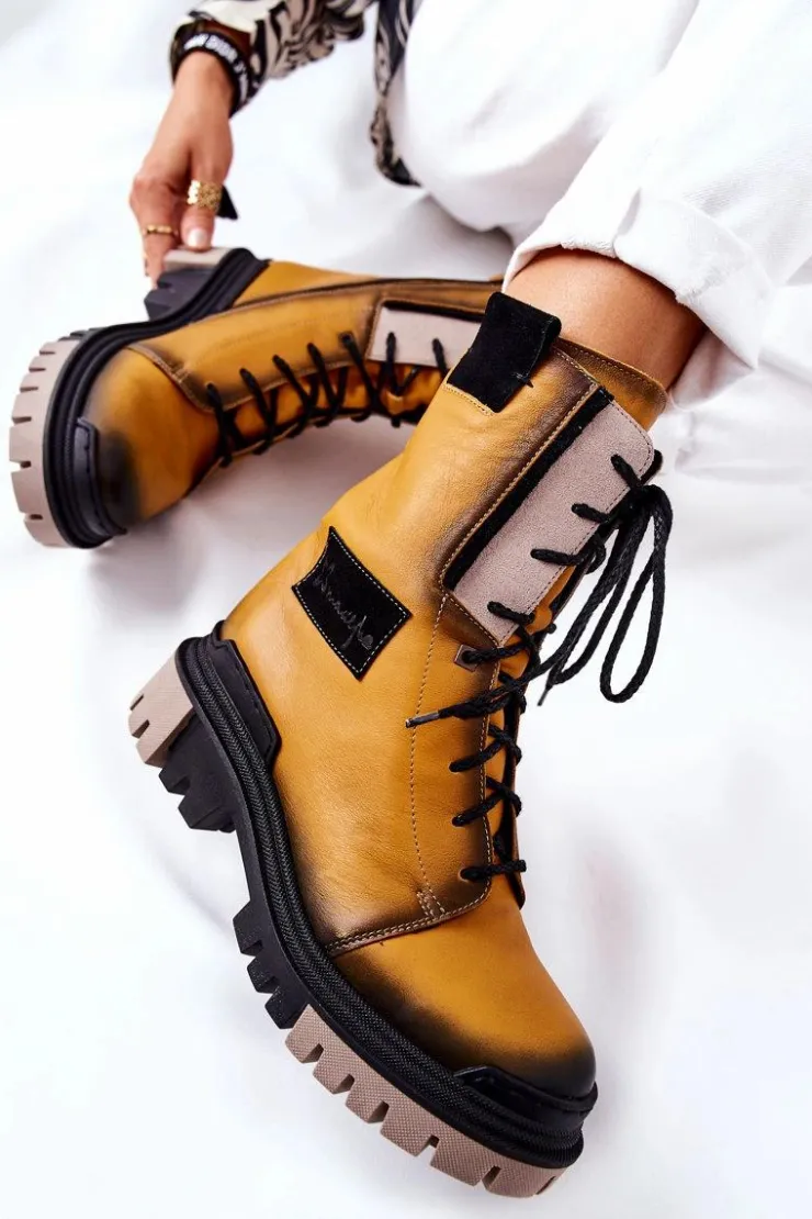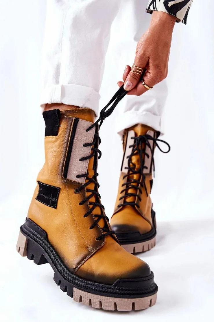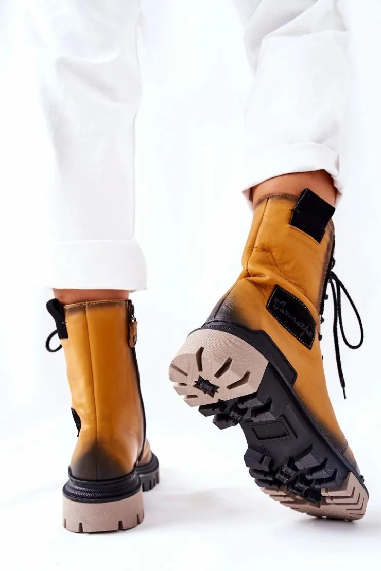 Sale Maciejka Skórzane Trzewiki Botki Ocieplane Żółte 05113-07