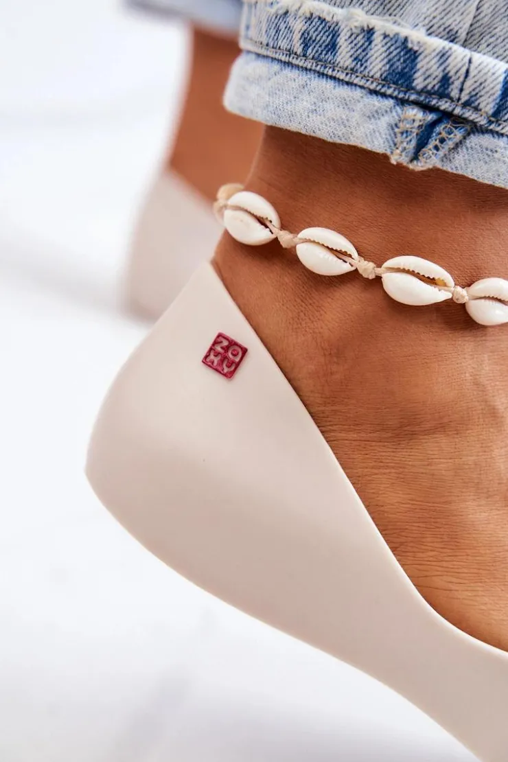 Wspaniała kolekcja pachnących balerinek marki ZAXY. Uniwersalne, najwyższej jakości baleriny, wykonane z miękkiego gumowego tworzywa. Posiadają antypoślizgową podeszwę. Zdobione serduszkiem, które nadaje im niesamowitego uroku. Nosek zaokrąglony. Wygodna wkładka zadba o komfort Twoich stóp. Zostały wykonane w technologii HUG TEC, dzięki której są bardziej elastyczne i miękkie. Buty te są wegańskie i hipoalergiczne. W 100% podlegają recyklingowi i nie zawierają ftalanów, czyli związków chemicznych odpowiedzialnych za elastyczność materiałów typu guma, plastik. Przy wyborze rozmiaru prosimy kierować się tabelą rozmiarów.