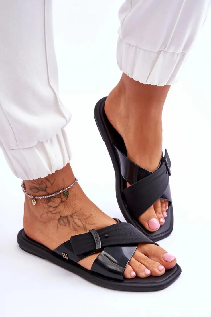 Modne, wegańskie klapki marki ZAXY zostały wykonane z wysokojakościowego, pachnącego tworzywa. Dodatkowo buty te są hipoalergiczne. W 100% podlegają recyklingowi i nie zawierają ftalanów, czyli związków chemicznych odpowiedzialnych za elastyczność materiałów typu guma, plastik. Posiadają paski z ozdobną blaszką z logo marki ZAXY. Przy wyborze rozmiaru prosimy sugerować się tabelą rozmiarów.