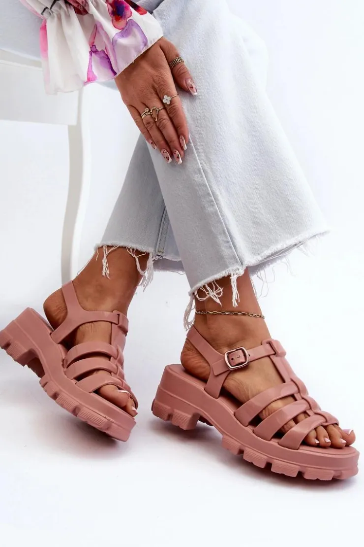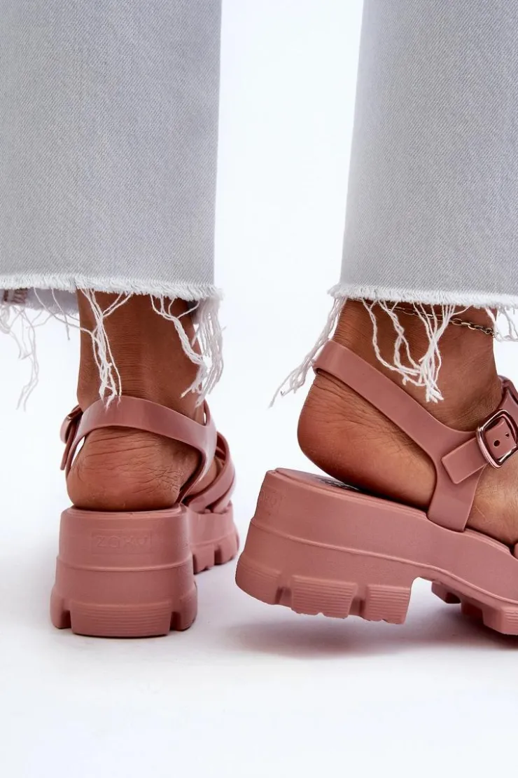 ZAXY Sandały Gumowe|Sandały Na Obcasie*Pachnące Sandały Damskie NN285038 Brudny Róż Różowy
