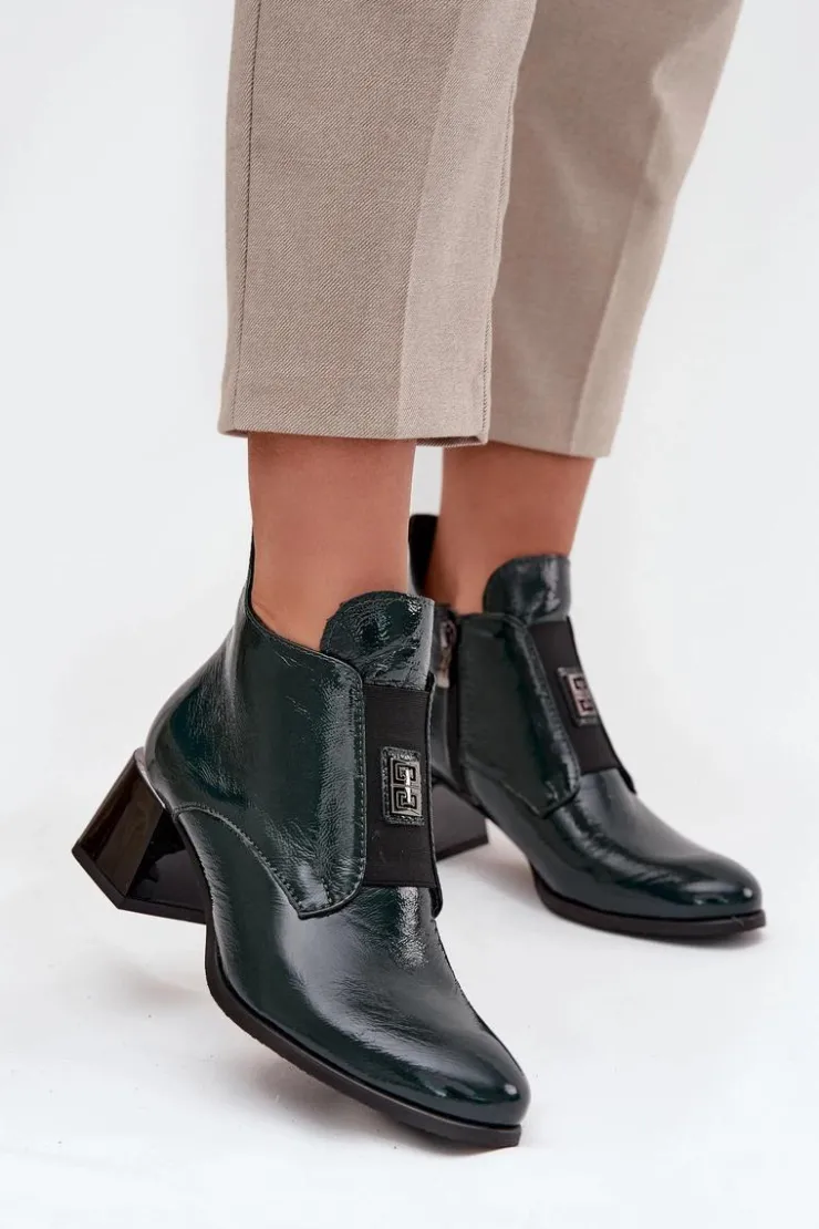 Botki ze skóry naturalnej to połączenie elegancji i wygody. Osadzone na stabilnym obcasie typu klocek, zapewniają komfort przez cały dzień. Wnętrze jest ocieplane, co gwarantuje ciepło w chłodniejsze dni. Z przodu buta znajduje się elastyczna wstawka, która nie tylko ułatwia zakładanie, ale również dodaje subtelnego, modnego akcentu. Zapinane na zamek. Dodatkowo mały ozdobny detal sprawia, że te botki wyróżniają się oryginalnym stylem. Koniecznie powinnaś je mieć! Przy wyborze rozmiaru prosimy kierować się tabelą rozmiarów.