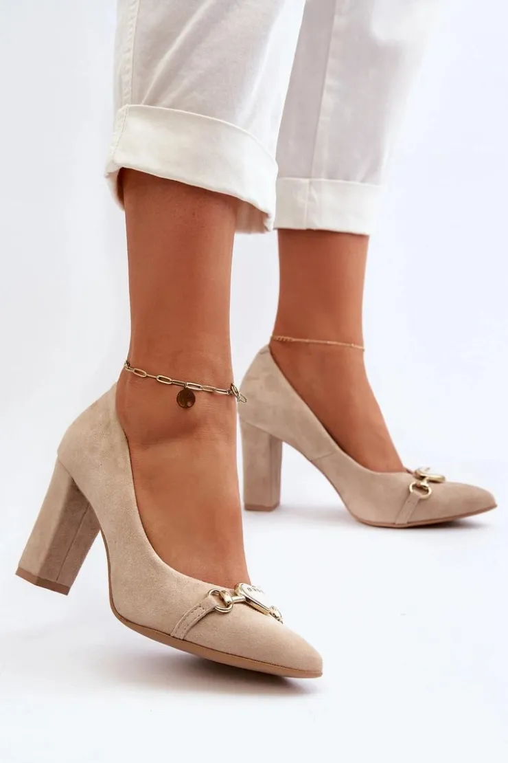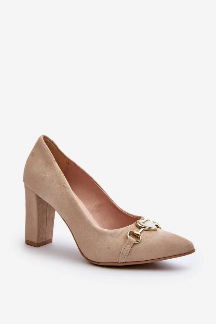 Czółenka wykonane z naturalnego zamszu prezentują elegancki design, który z pewnością przyciąga uwagę. Obcas w postaci słupka i noskami w szpic, zapewniają one zarówno stylowy wygląd, jak i wygodę noszenia. Dodatkowy urok dodaje im ozdoba w postaci serca umieszczona z przodu, nadając subtelnego romantycznego akcentu. Idealne na wiele okazji, te czółenka stanowią niezawodny element garderoby każdej kobiety! Przy wyborze rozmiaru prosimy sugerować się tabelą rozmiarów.