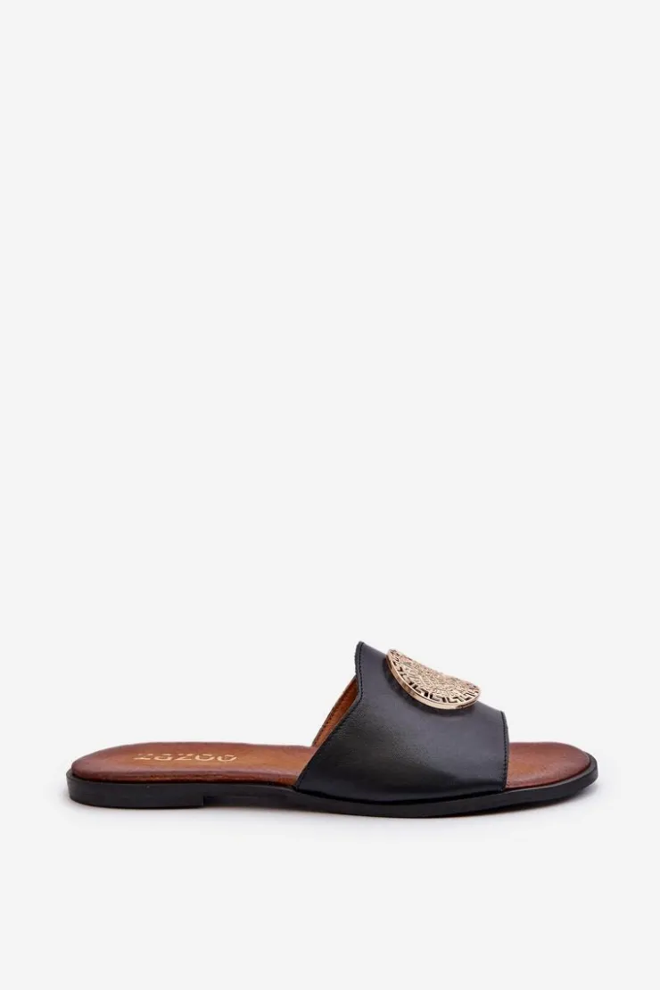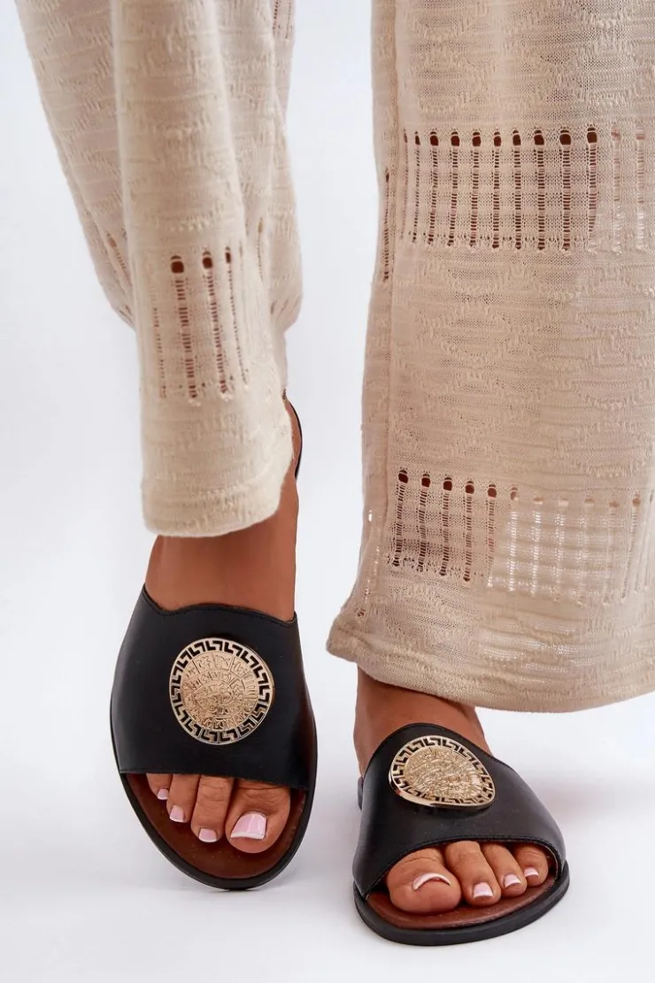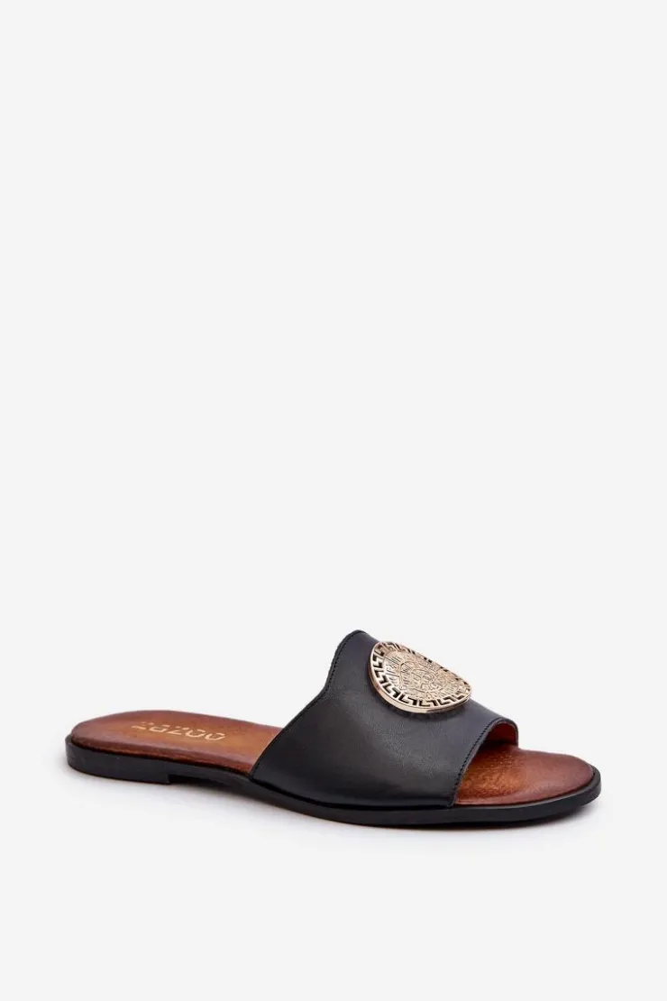 Damskie klapki wykonane ze skóry naturalnej to doskonały wybór dla kobiet, które cenią sobie elegancję i wygodę. Osadzone na płaskim obcasie, zapewniają komfort noszenia przez cały dzień, co sprawia, że są idealne zarówno do codziennych stylizacji, jak i na bardziej formalne okazje. Wzbogacone złotą ozdobą, która dodaje im wyjątkowego uroku i klasy. Dzięki starannemu wykonaniu te klapki są trwałe i stylowe, stanowiąc niezbędny element w każdej kobiecej garderobie. Przy wyborze rozmiaru prosimy sugerować się tabelą rozmiarów.