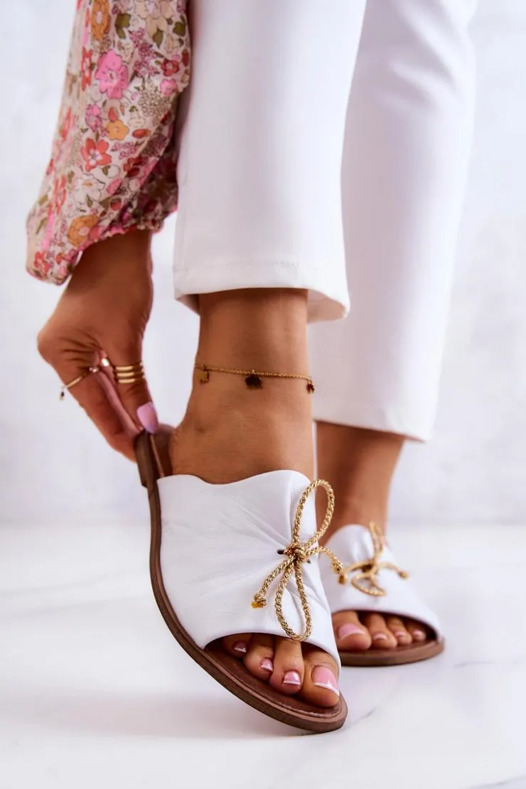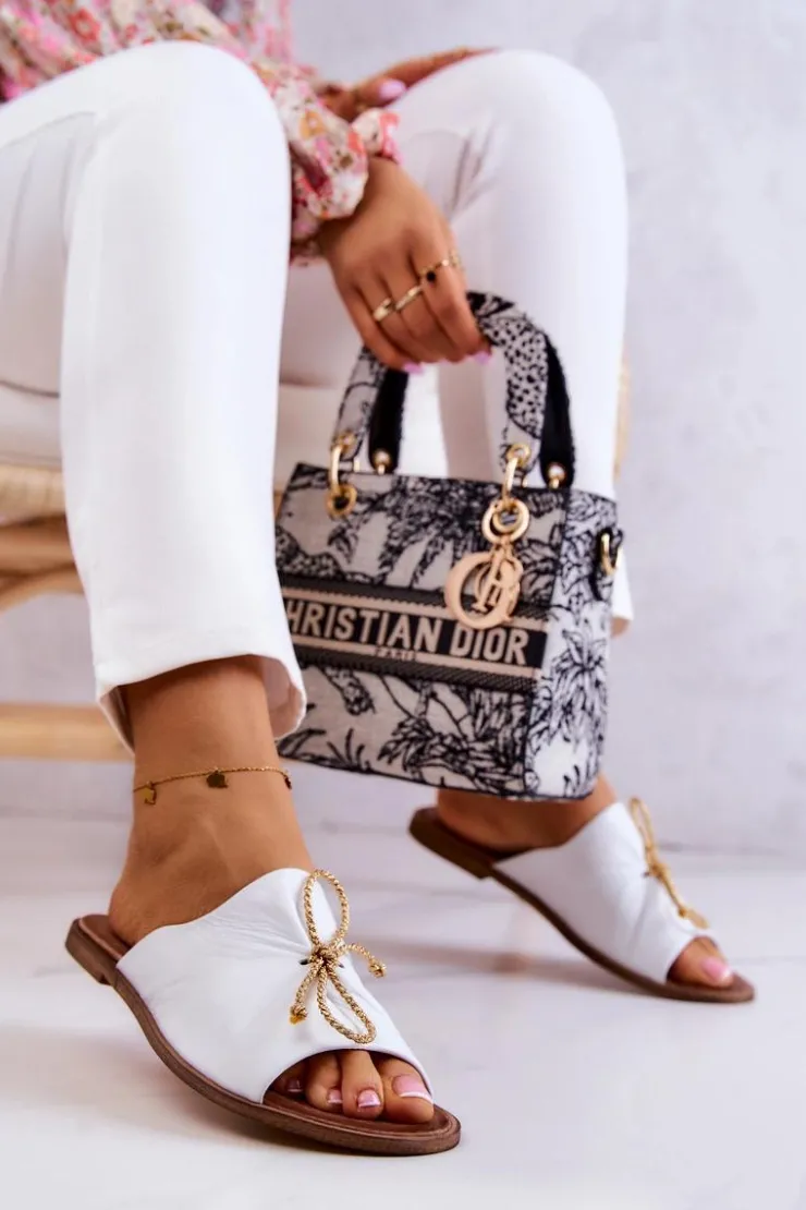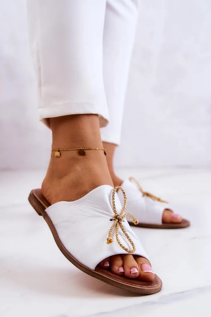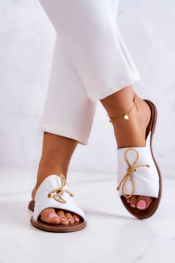 Wygodne klapki ozdobione modnym, plecionym sznureczkiem. Delikatne marszczenie dodaje tym klapkom subtelnego wyglądu. Buty wykonane są w całości ze skóry. Posiadają sztywną, wykonaną z tworzywa sztucznego podeszwę. Miękka wkładka zapewni komfort nawet w upalne dni! Koniecznie sprawdź całą naszą kolekcję damskich klapek! Przy wyborze rozmiaru prosimy sugerować się tabelą rozmiarów.