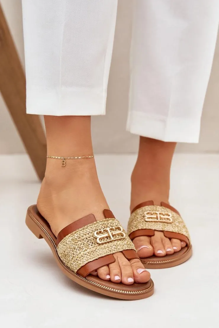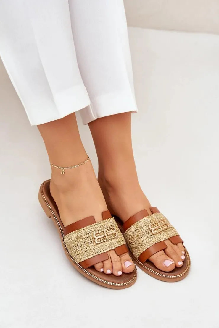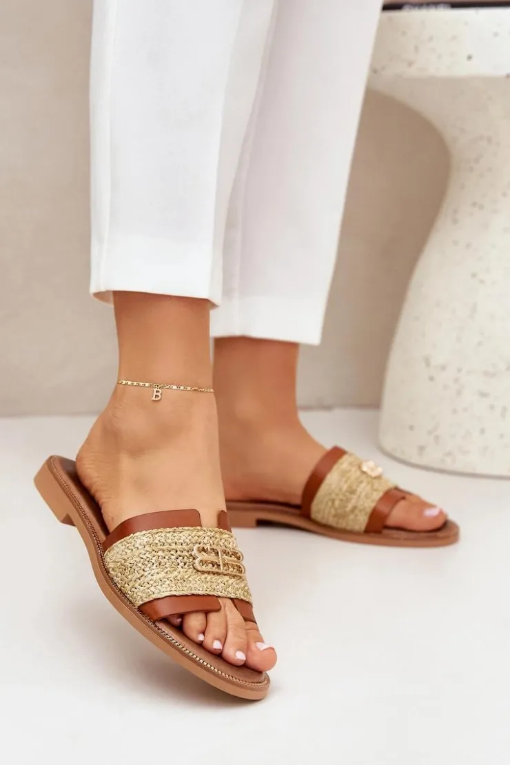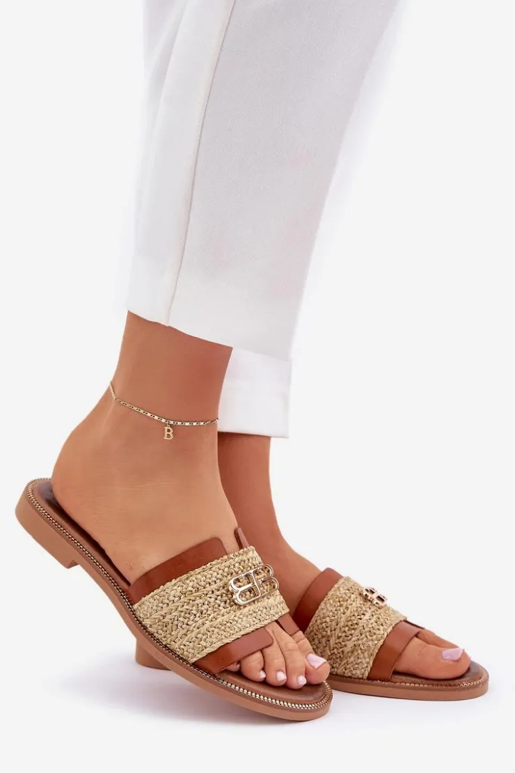 Klapki damskie z naturalnej skóry to stylowa propozycja na ciepłe dni. Osadzone na płaskim obcasie, zapewniają wygodę i komfort przez cały dzień. Wyróżniają się słomkową plecionką, która nadaje im lekkiego, letniego charakteru, oraz ozdobnym złotym detalem, który dodaje elegancji i subtelnego blasku. Idealne do wakacyjnych stylizacji, te klapki łączą naturalny urok z modnym akcentem, doskonale komponując się z casualowymi i letnimi outfitami. Przy wyborze rozmiaru prosimy sugerować się tabelą rozmiarów.