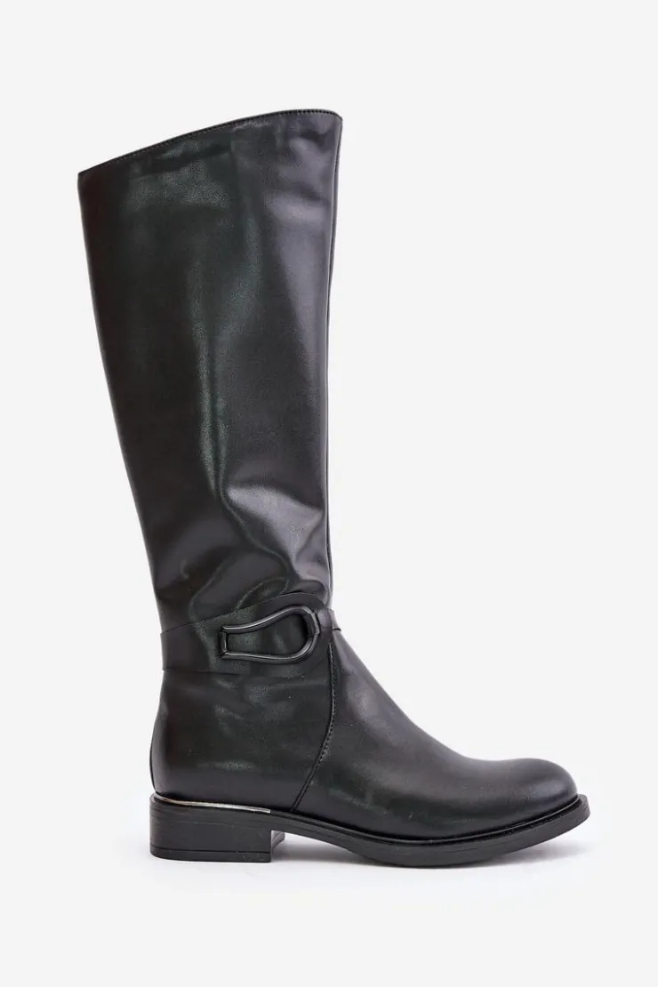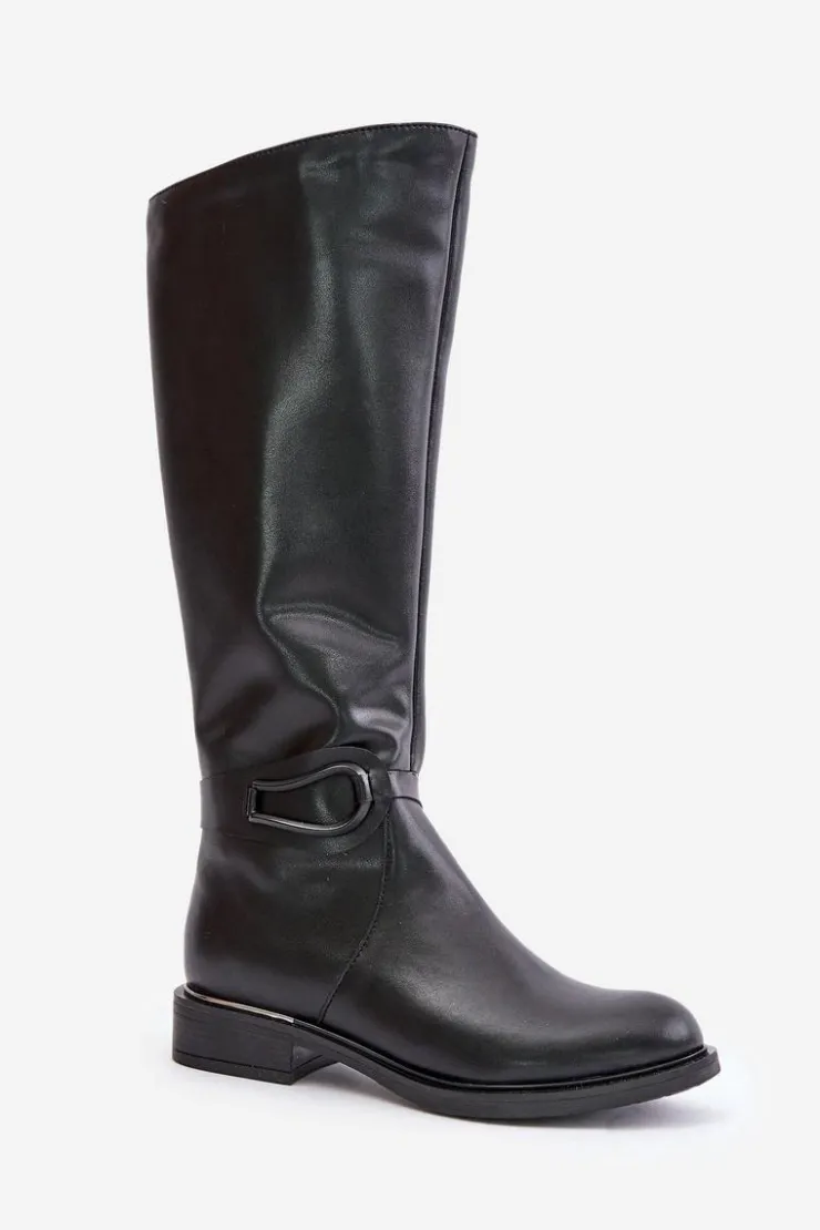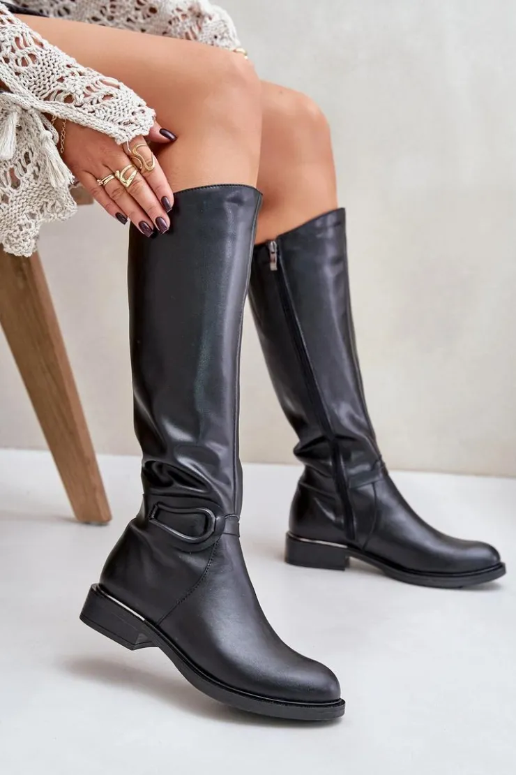Damskie kozaki wykonane z naturalnej skóry stanowią eleganckie i komfortowe rozwiązanie. Dzięki płaskiemu obcasowi, użytkowanie przez cały dzień jest niezwykle wygodne. Cholewka sięgająca przed kolano dodaje elegancji i doskonale pasuje do różnorodnych stylizacji. Zapinane na zamek, co ułatwia zakładanie. Ozdobny pasek na cholewce nadaje wyjątkowego charakteru. Idealne zarówno na codzienne wyjścia, jak i na specjalne okazje, te kozaki będą znakomitym dodatkiem do Twojej garderoby! Przy wyborze rozmiaru prosimy sugerować się tabelą rozmiarów.