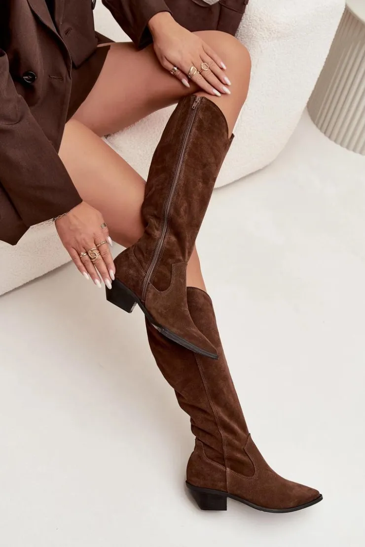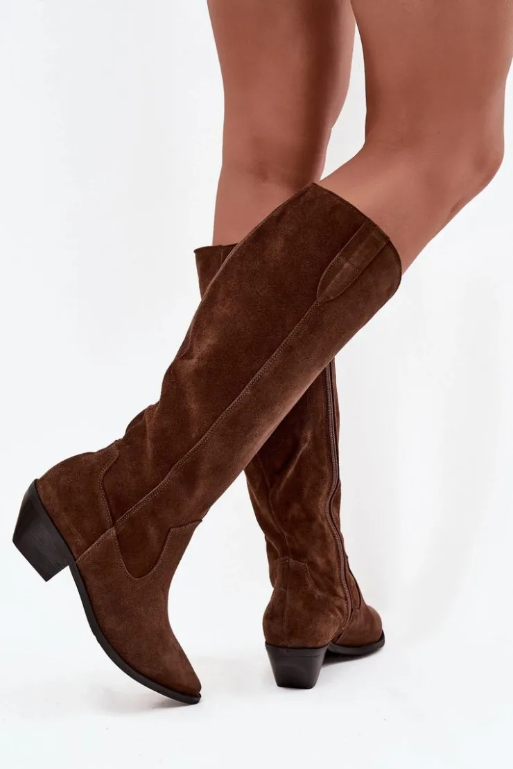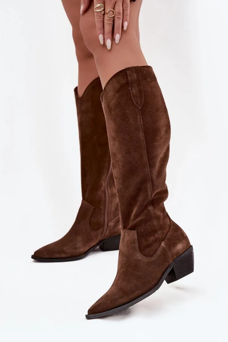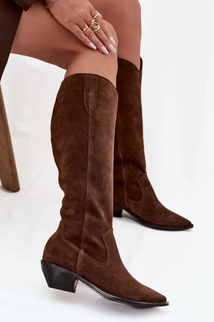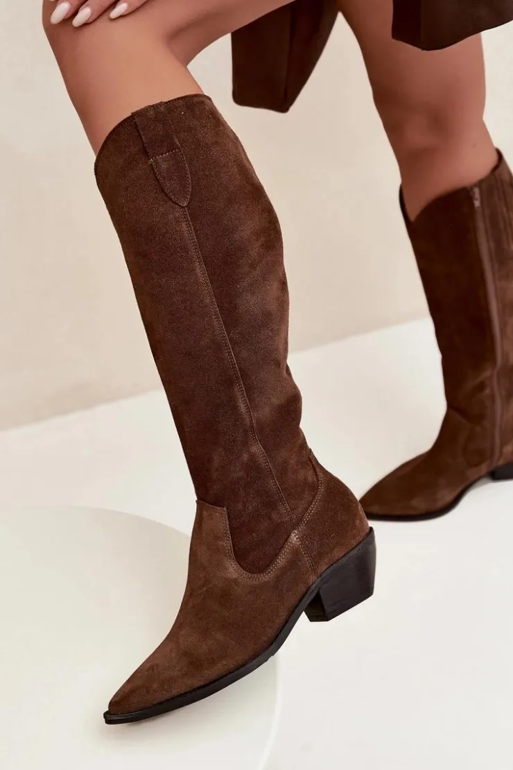 Kozaki kowbojki damskie wykonane z wysokiej jakości naturalnego zamszu to połączenie ponadczasowego stylu i wygody. Charakterystyczne szpiczaste noski nadają kobiecego, stylowego wyrazu, podkreślając sylwetkę i dodając im lekkości. Wnętrze zostało ocieplone filcem, co zapewnia komfort termiczny i wygodę podczas chłodniejszych dni. Dzięki temu kozaki doskonale sprawdzą się zarówno w codziennych stylizacjach, jak i podczas wyjątkowych okazji. To model inspirowany klasycznym stylem westernowym, który świetnie prezentuje się w połączeniu z sukienkami boho, spódnicami czy dopasowanymi jeansami. Idealny wybór dla kobiet ceniących modę, komfort i niepowtarzalny charakter obuwia. Przy wyborze rozmiaru prosimy sugerować się tabelą rozmiarów.