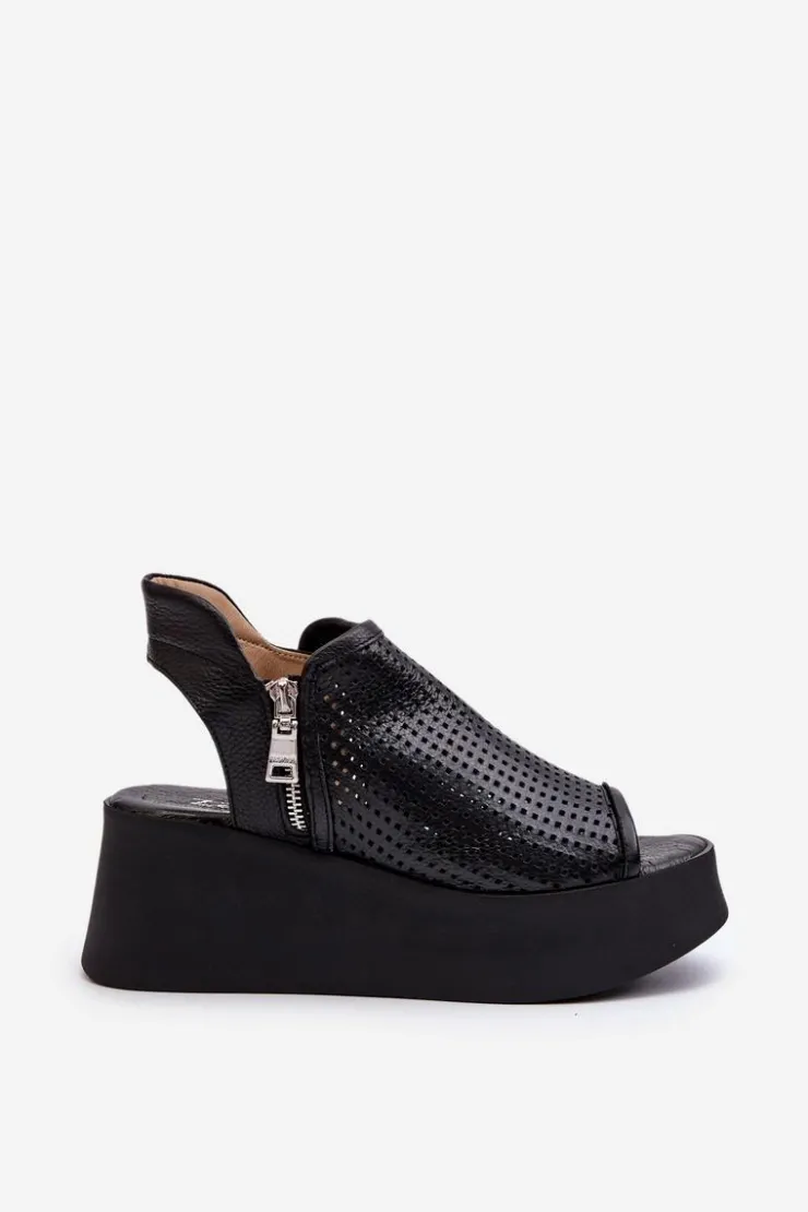 Sandały damskie na koturnie to połączenie elegancji i wygody. Wykonane ze skóry naturalnej, zapewniają trwałość i komfort noszenia. Delikatny ażurowy wzorek nadaje im lekkości i wdzięku, idealnie pasując do letnich stylizacji. Zapinane na zamek gwarantują stabilne trzymanie stopy. To doskonały wybór na letnie dni, zarówno do codziennych, jak i bardziej formalnych okazji. Przy wyborze rozmiaru prosimy kierować się tabelą rozmiarów.