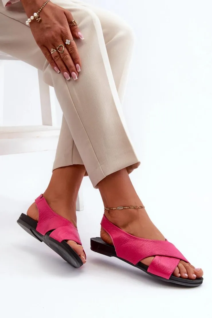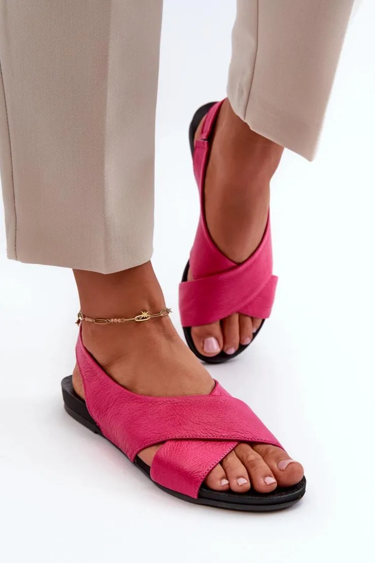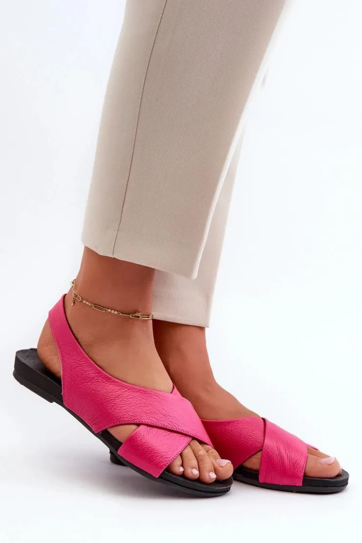 Eleganckie sandały damskie zostały wykonane z wysokiej jakości naturalnej skóry. Osadzone na płaskim obcasie. Sandałki posiadają odkrytą piętę i palce. Miękka, skórzana wkładka zapewni wygodne użytkowanie. Z tyłu na pasku dodatkowa gumka, która zapewni lepszą stabilizację stopy. Idealne do niemalże każdej letniej stylizacji. Koniecznie powinnaś je mieć! Przy wyborze rozmiaru prosimy kierować się tabelą rozmiarów.