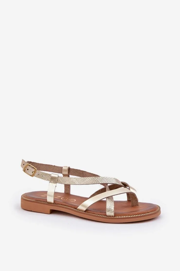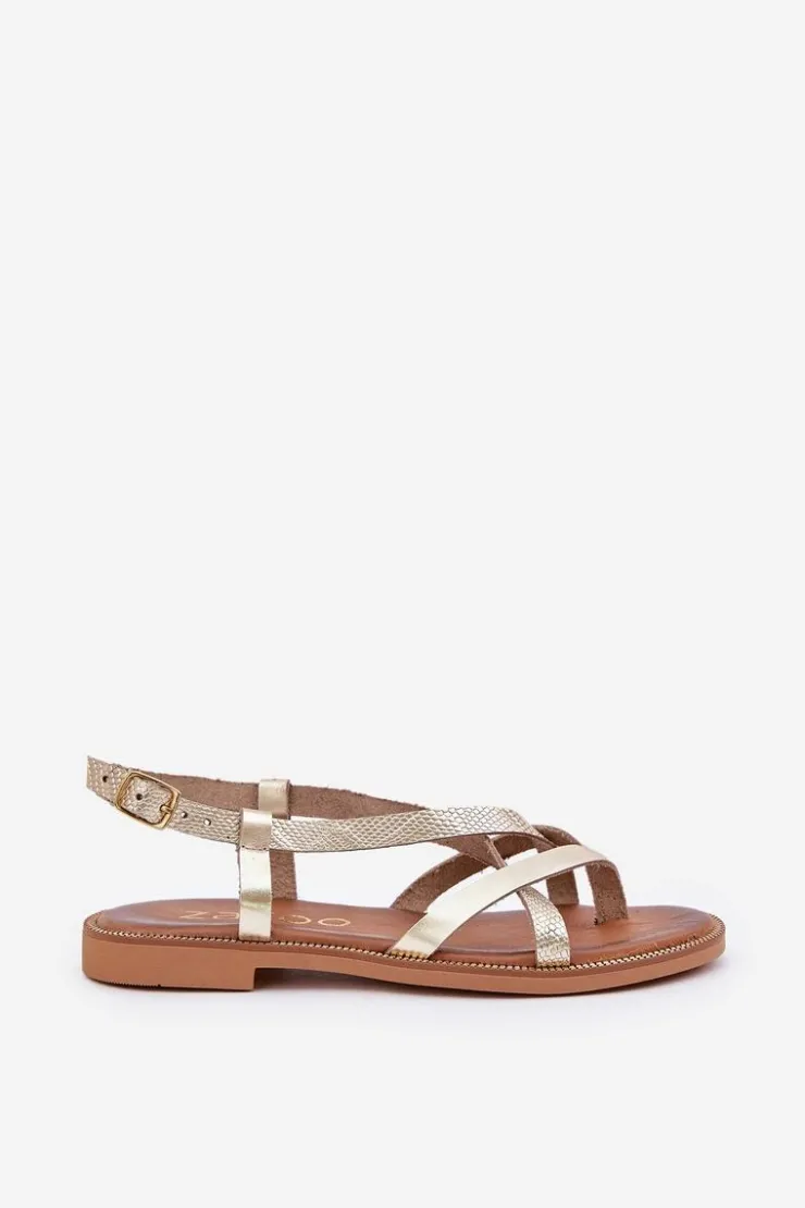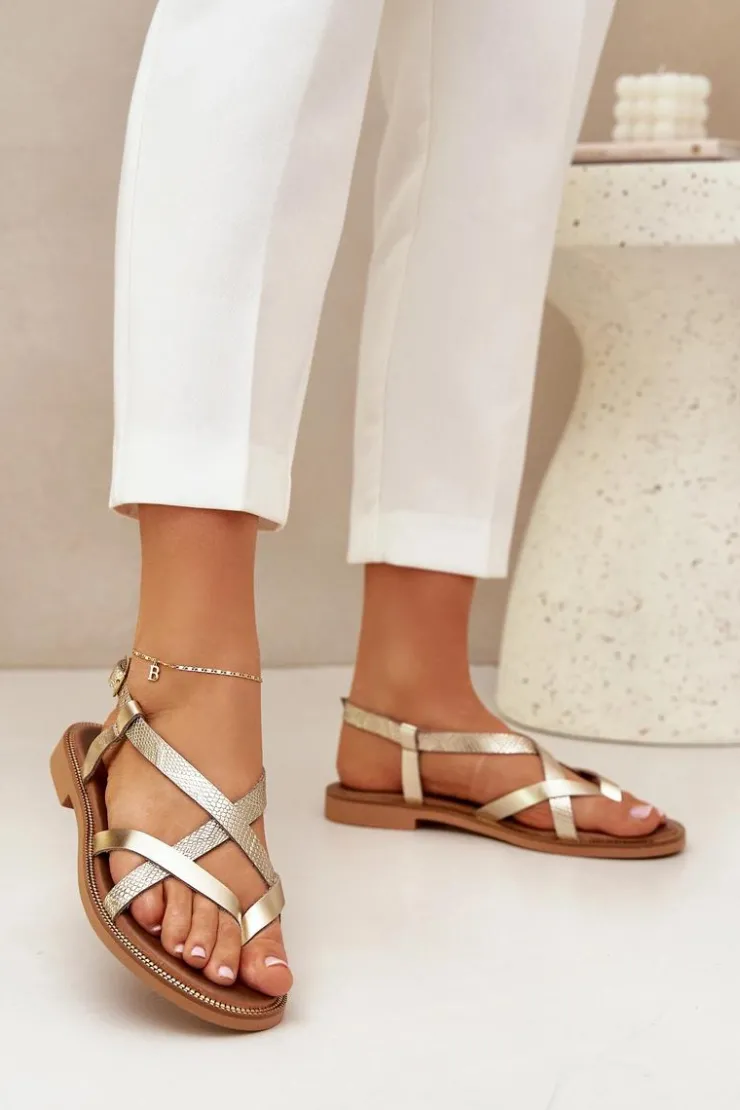 Płaskie sandały wykonane z naturalnej skóry to elegancka propozycja na ciepłe dni. Zapinane na regulowany pasek ze sprzączką, co pozwala na idealne dopasowanie do stopy. Przeplatające się paski nadają im subtelny, ale jednocześnie nowoczesny wygląd. Te sandały łączą wygodę z modnym designem, sprawdzając się doskonale zarówno na co dzień, jak i w bardziej eleganckich stylizacjach. Przy wyborze rozmiaru prosimy kierować się tabelą rozmiarów.