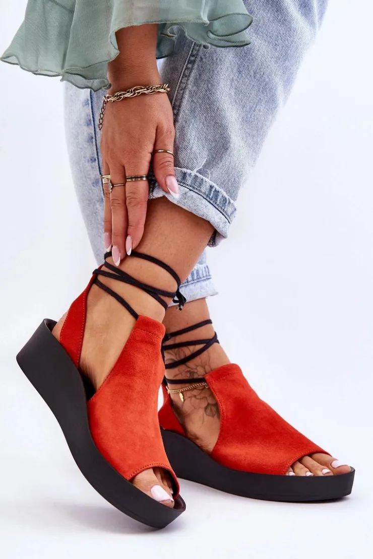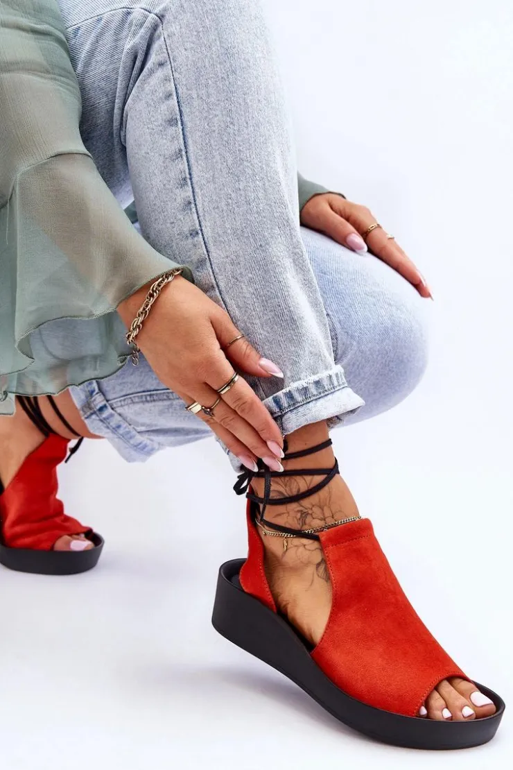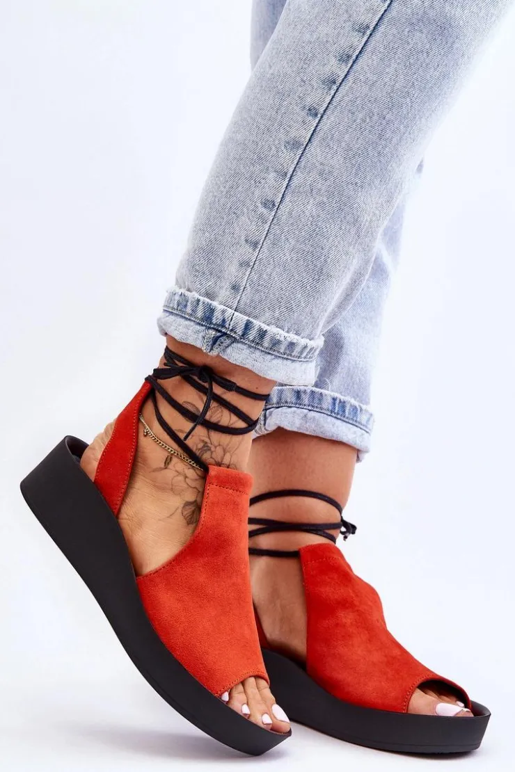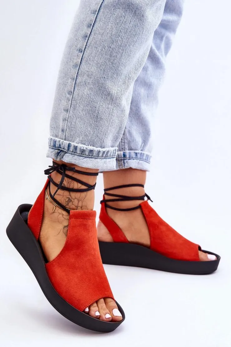 Niezwykle wygodne i modne sandałki damskie zostały wykonane z naturalnej skóry. Model wiązany, z cholewką za kostkę. Sandałki posiadają miękką, skórzaną wkładkę. Sandały osadzono na platformie oraz niewysokim koturnie. Ten fason z pewnością przypadnie Ci do gustu! Przy wyborze rozmiaru prosimy kierować się tabelą rozmiarów.