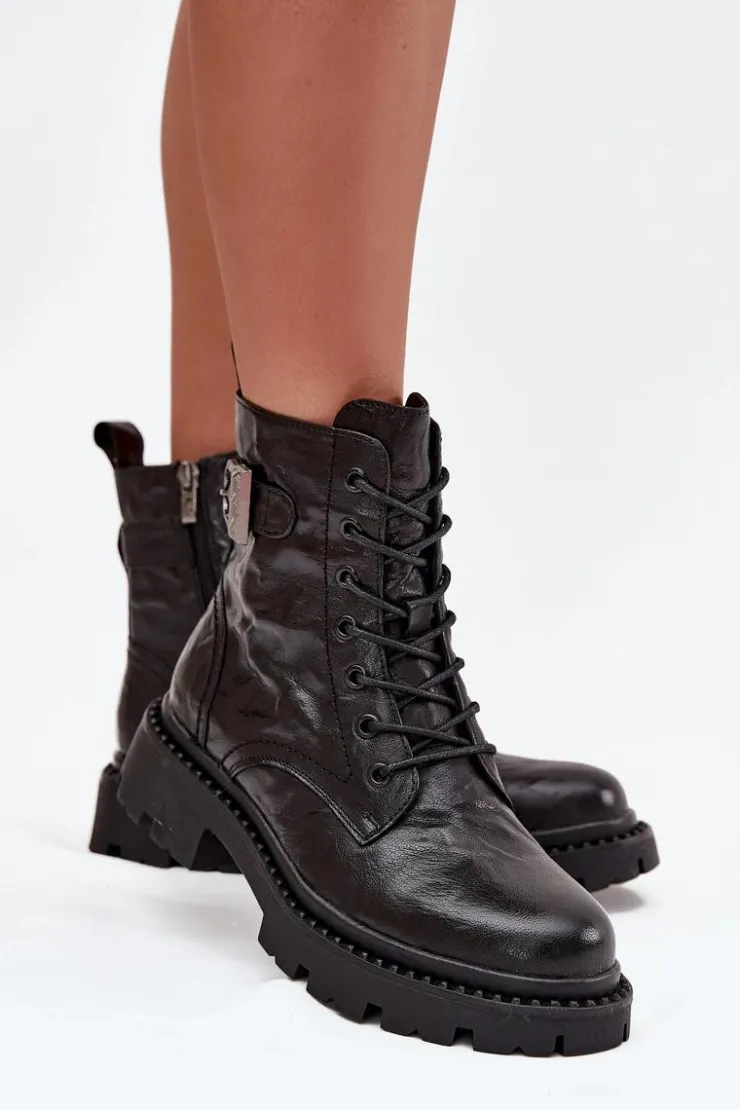 Botki damskie marki Artiker wykonane z naturalnej skóry to propozycja, która łączy elegancję z nowoczesnym wyglądem. Cholewka zdobiona efektem gniecenia nadaje obuwiu oryginalnego charakteru i sprawia, że buty wyróżniają się na tle klasycznych modeli. Dodatkowym atutem jest ozdobna klamra umieszczona w górnej części cholewki, która podkreśla wyjątkowy styl. Model zapinany na zamek jest praktyczny i wygodny w codziennym użytkowaniu, a ocieplane wnętrze gwarantuje komfort oraz ciepło w chłodniejsze dni. To botki, które świetnie sprawdzą się zarówno w codziennych stylizacjach, jak i przy bardziej eleganckich wyjściach. Przy wyborze rozmiaru prosimy sugerować się tabelą rozmiarów.