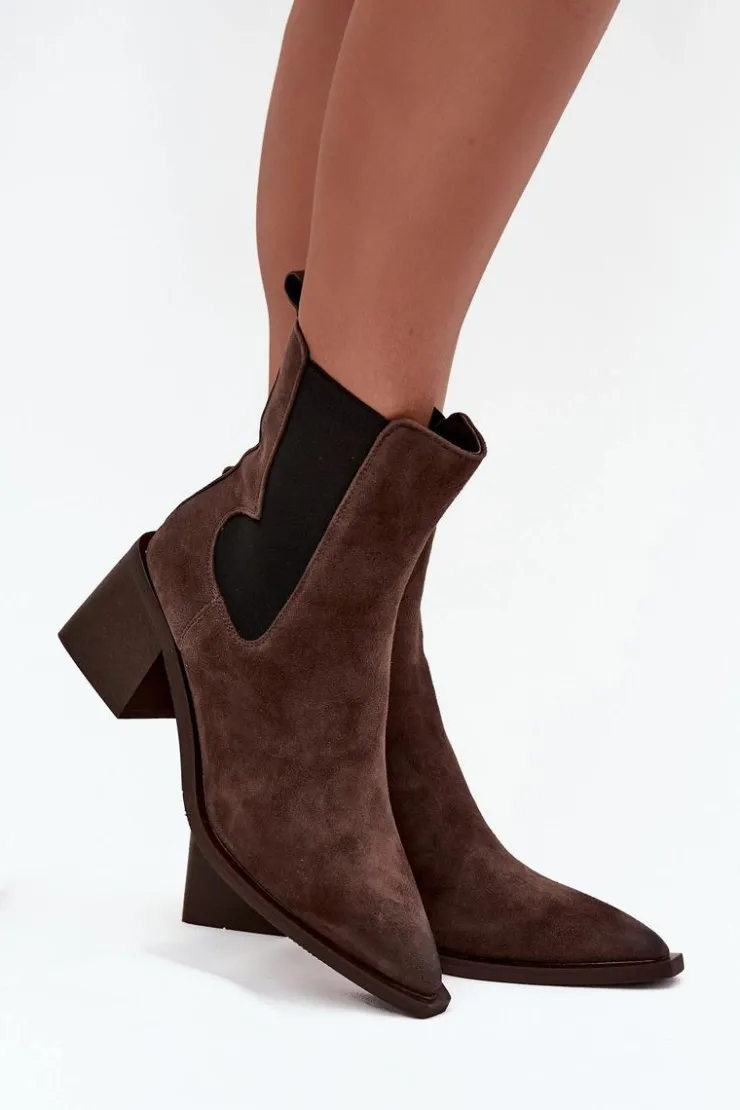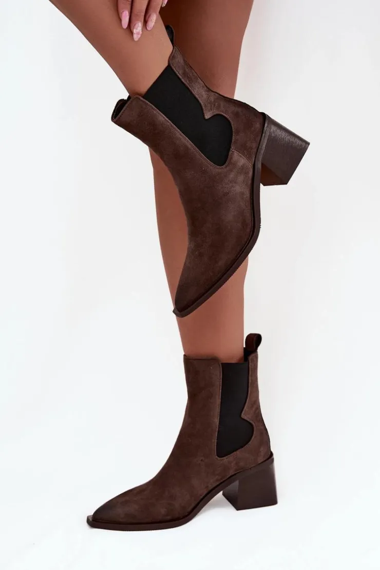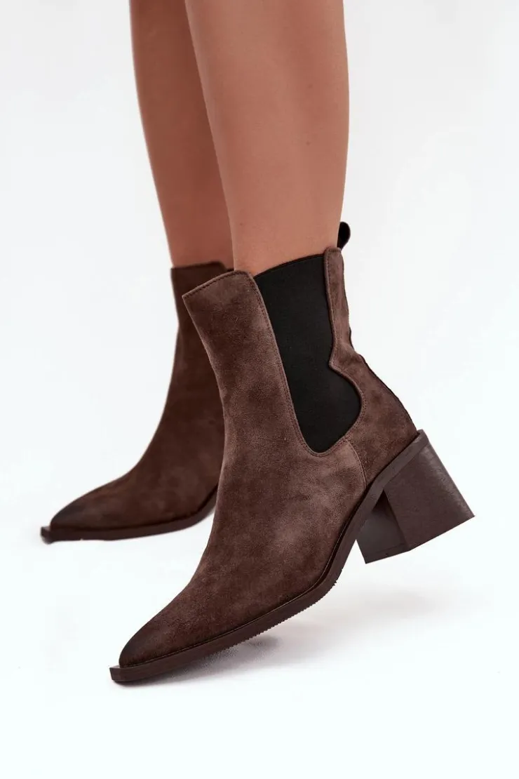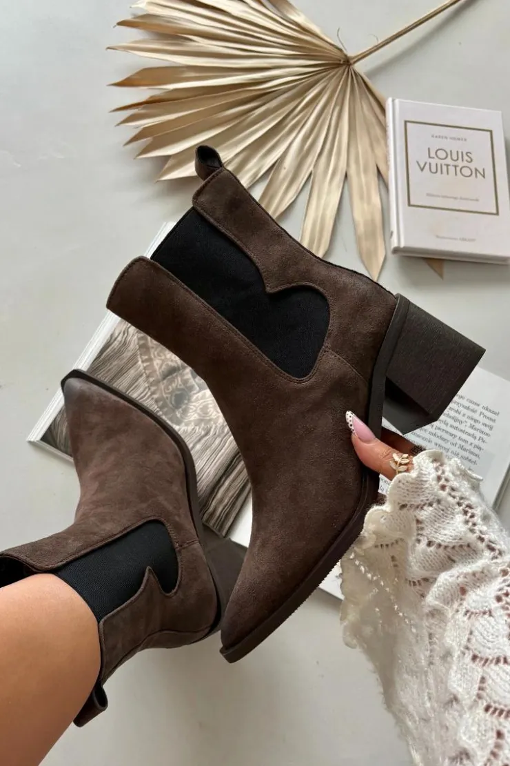 Botki damskie marki Artiker to elegancka propozycja dla kobiet ceniących styl i wygodę. Wykonane z naturalnego zamszu prezentują się niezwykle szykownie, a obcas w formie stabilnego słupka dodaje sylwetce smukłości i zapewnia komfort podczas noszenia. Szpiczaste noski podkreślają kobiecy charakter butów, a elastyczne wstawki na cholewce ułatwiają zakładanie i dopasowanie do nogi. Model wsuwany z ocieplanym wnętrzem doskonale sprawdzi się w chłodniejsze dni, łącząc praktyczność z eleganckim stylem. Przy wyborze rozmiaru prosimy sugerować się tabelą rozmiarów.