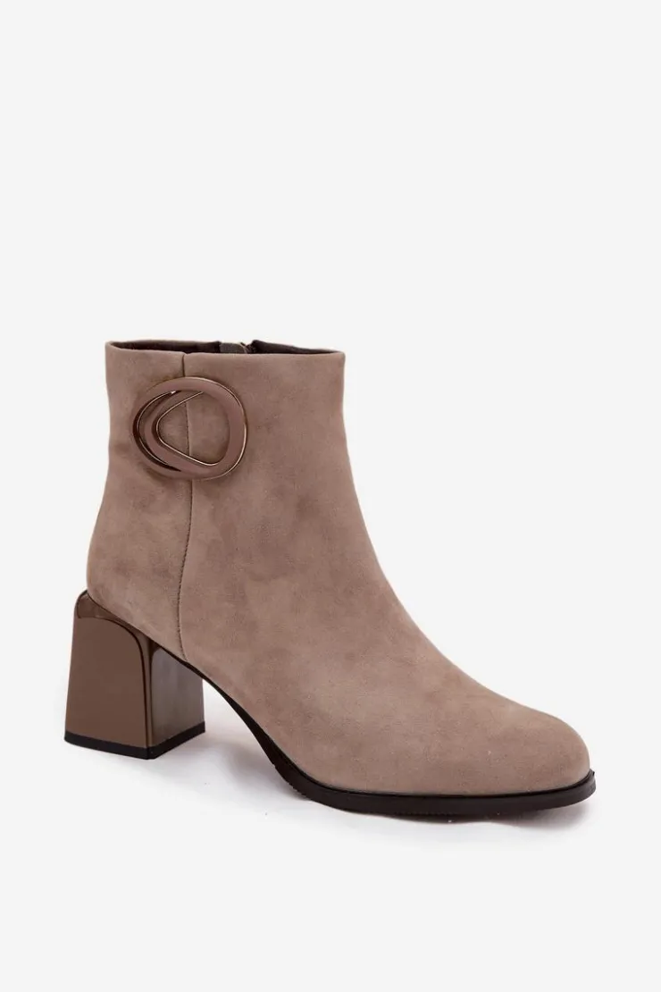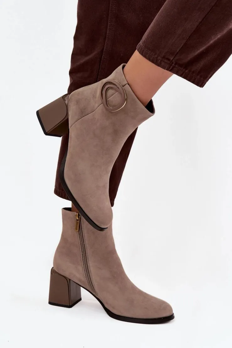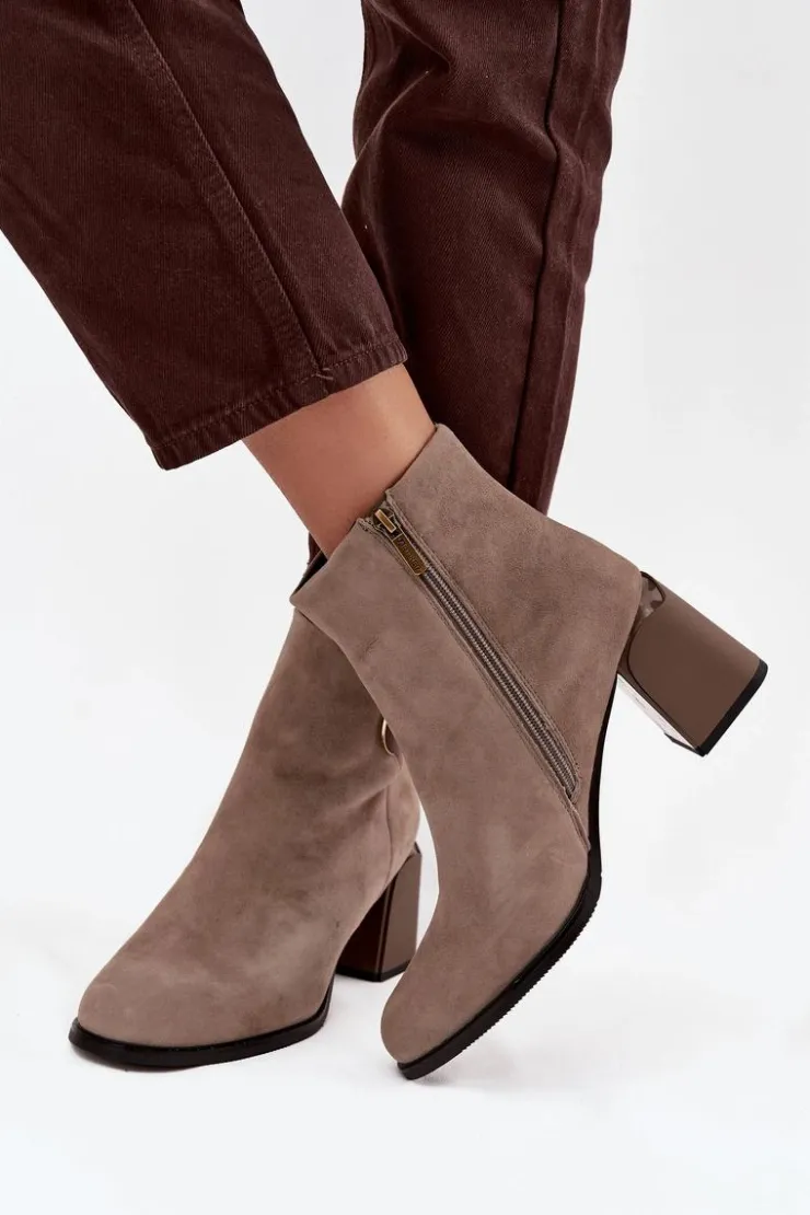Botki damskie marki Artiker to elegancka propozycja na sezon jesienno-zimowy. Wykonane z naturalnego zamszu prezentują się szykownie i są przyjemne w dotyku, a stabilny obcas typu słupek gwarantuje wygodę oraz pewność kroku. Zaokrąglone noski. Zapięcie na zamek ułatwia zakładanie i zdejmowanie. Wnętrze zostało ocieplone. Dodatkowym atutem jest ozdobny detal umieszczony z boku cholewki, który podkreśla wyjątkowy charakter tego modelu. Przy wyborze rozmiaru prosimy sugerować się tabelą rozmiarów.
